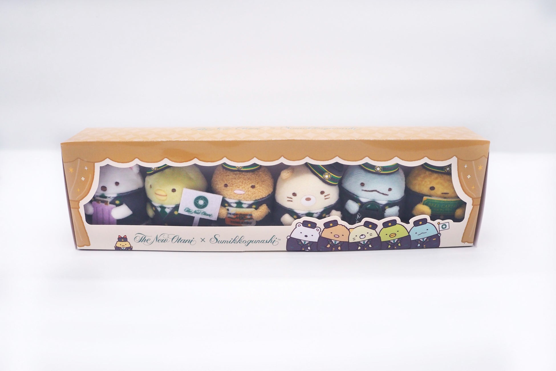 てのりぬいぐるみはホテルマンに扮したすみっコたちの6個セット。それぞれが持っているアイテムは実際にホテルで使用されているものも!一緒に館内をめぐったり、日本庭園に連れて行って写真撮影をしたりと、楽しみ方はさまざま。ほかでは味わうことができない極上のホテルステイをお楽しみください。