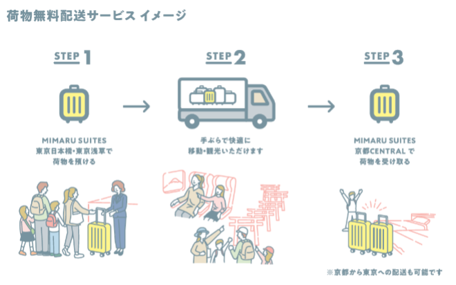 ① 荷物無料配送サービス 『MIMARU SUITES 東京 2施設』 ⇔『MIMARU SUITES 京都CENTRAL』