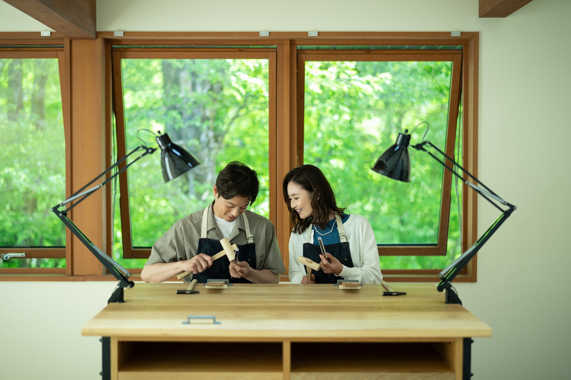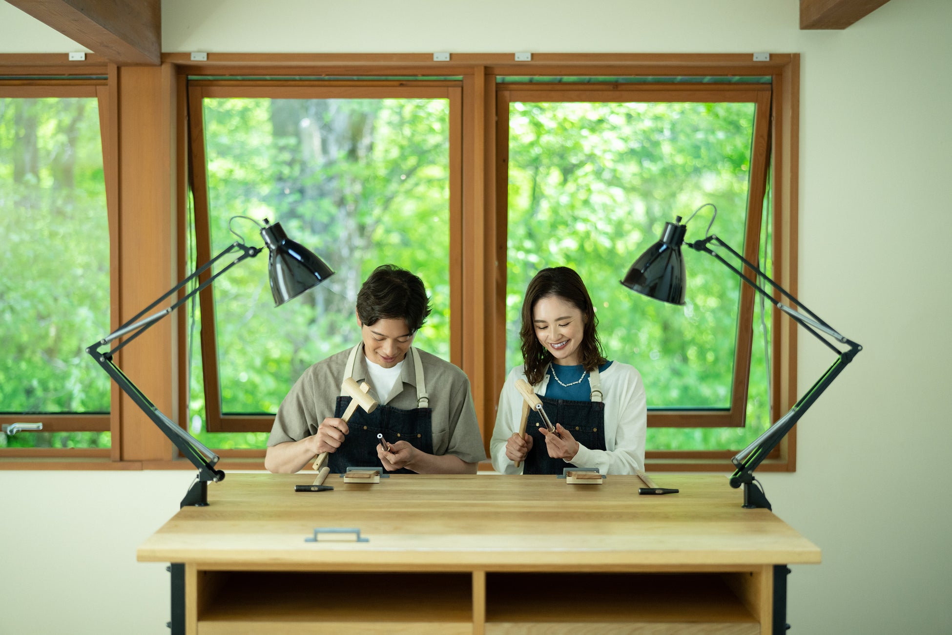 CRAFY・gläntaは、指輪作りの「時間」や「思い出」に価値を置き、人生における特別な時間となるような体験を提供しています。CRAFY・gläntaのそのような想いと「人生において何度でも訪れたくなる、特別な場所でありたい」という軽井沢星野エリアの想いが一致し、この度、ハルニレテラスでの出店に至りました。CRAFY・gläntaはハルニレテラス唯一の2階の店舗であり、湯川を見下ろす眺望や天井の窓から注ぐ陽の光も魅力です。木々に囲まれ、四季折々の自然を感じながら、穏やかな気持ちで制作に没頭することができます。制作した指輪を日常の中で見るたびに軽井沢での景色や体験を思い出し、何度も訪れたくなる特別な場所となることを願っています。