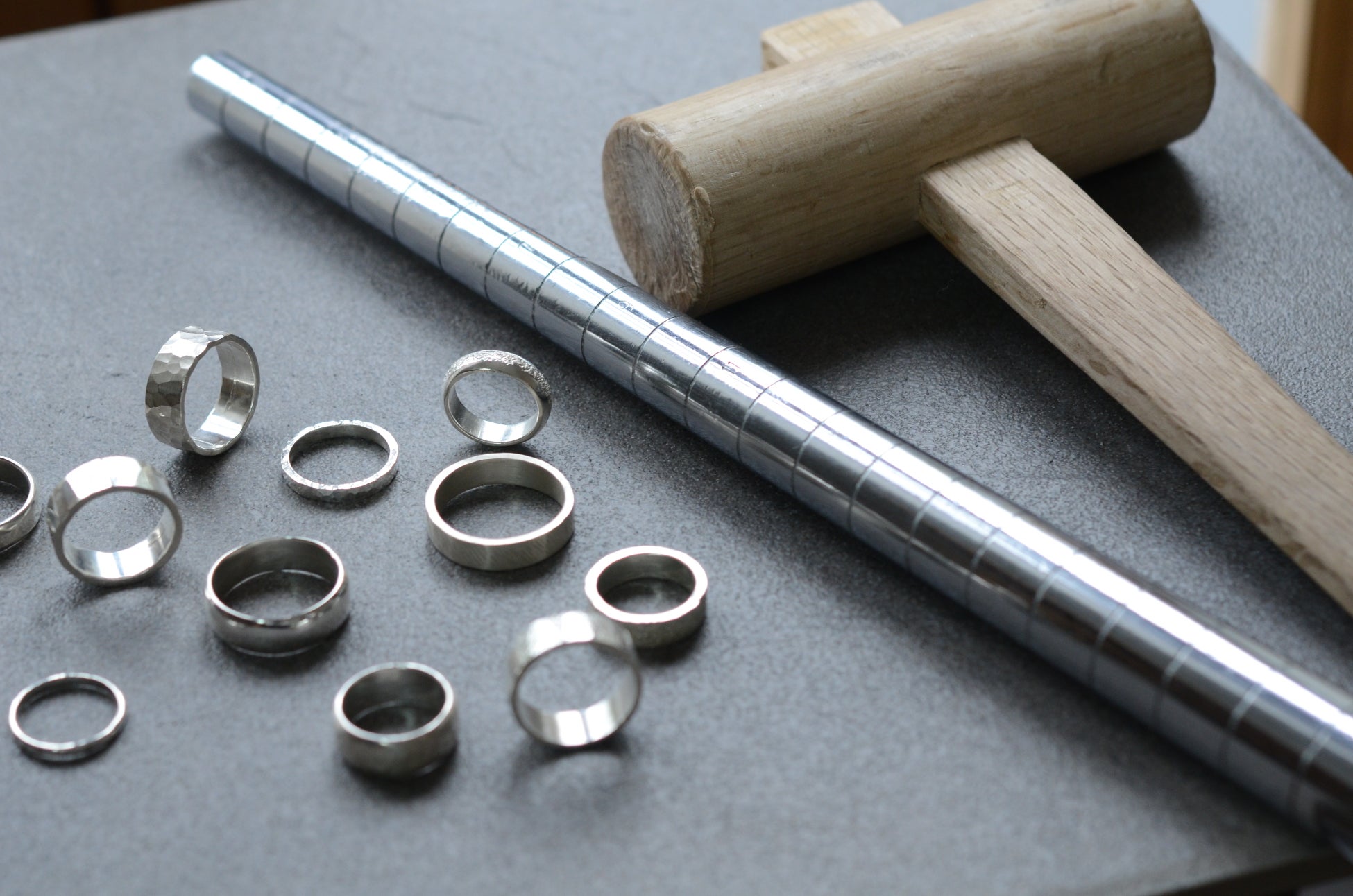 指輪を火であぶったり、ハンマーで叩いたり、工具を使って磨いたりして、自分の好きなように、オリジナルリングを作り上げることができます。