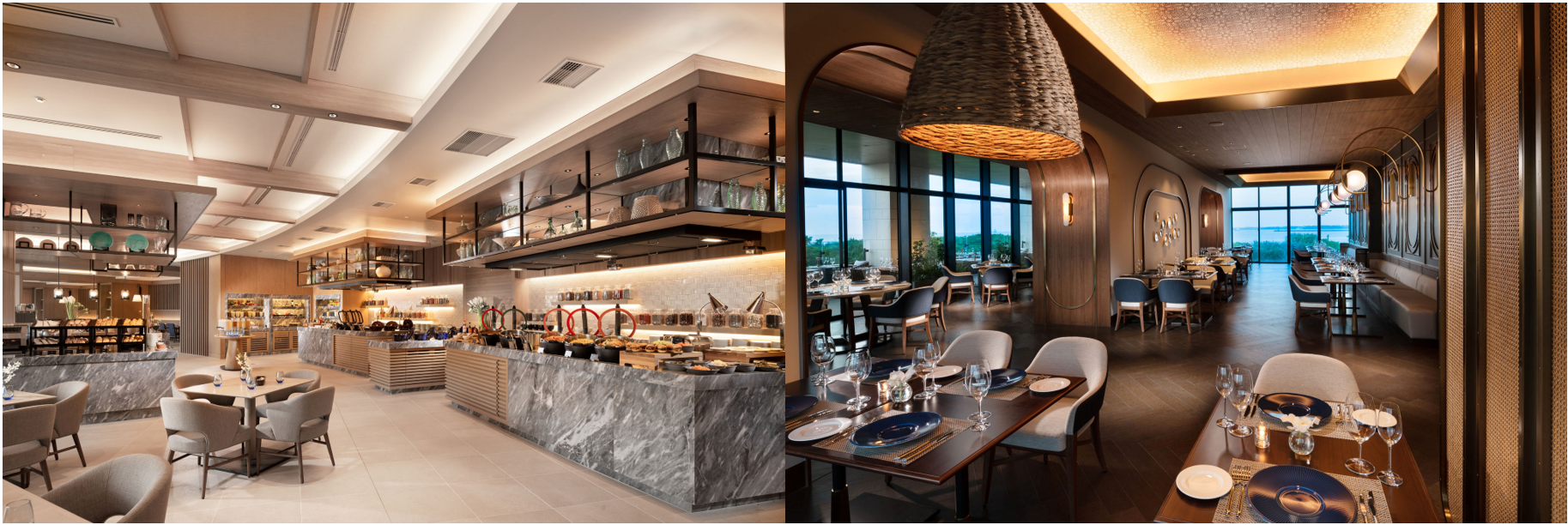 みやこサンセットビーチに隣接し、世界に誇る宮古ブルーの海や感動的なサンセット、伊良部大橋の絶景を見渡せる立地の良さを生かし、開放感溢れるオールデイダイニング、カジュアルに本格的なイタリアンを楽しめるシグネチャーレストラン、ルーフトップバー、ロビーラウンジで国内外のお客様や地元のお客様に島の恵みを存分に生かした食の体験を提供します。