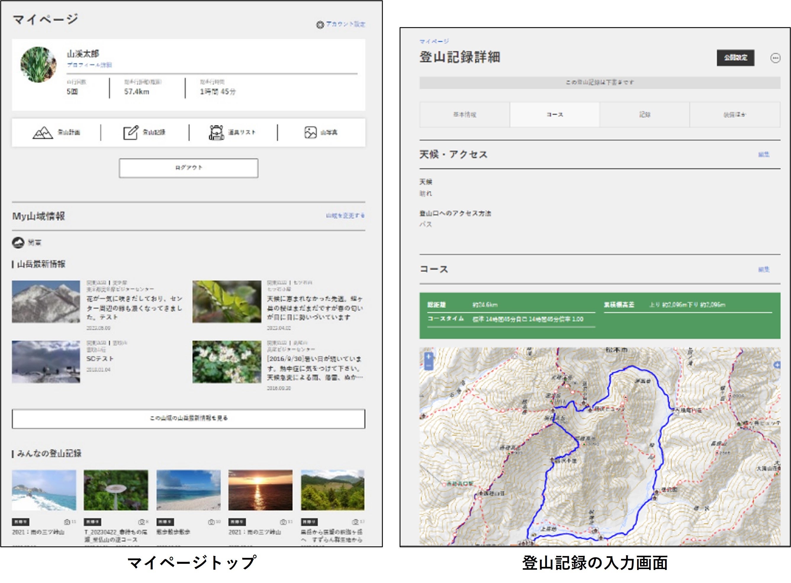 ■マイページのデザインを刷新。登山計画、登山記録などの使い勝手が大幅に向上登山計画・登山記録入力フォームのデザインを刷新し、基本情報から詳細情報へ、ページ切り替えで順を追って入力する形にしました。また表示要素も見やすく整理しています。さらに、一覧表示からも計画や記録の削除ができるようになり、操作性が向上しました。