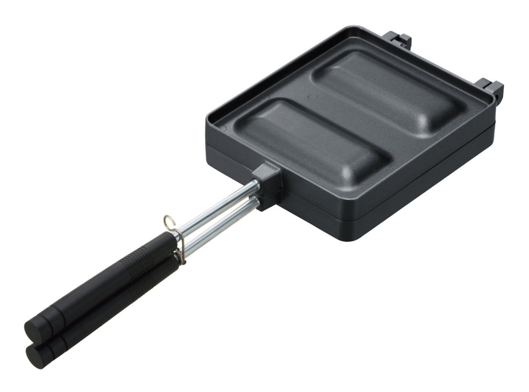 食パンをミミごと挟むことができるサイズで、好きな具材をはさんで焼くだけと簡単です。女性やお子様にもおすすめの食べきりやすいサイズのホットサンドを作ることができ、ガスコンロやたき火での調理に対応するので、ソロキャンプや一人暮らしの食卓で活躍します。焼いてから、包丁で切り分ける手間も省けるので、キャンプの朝の時短にもなります。