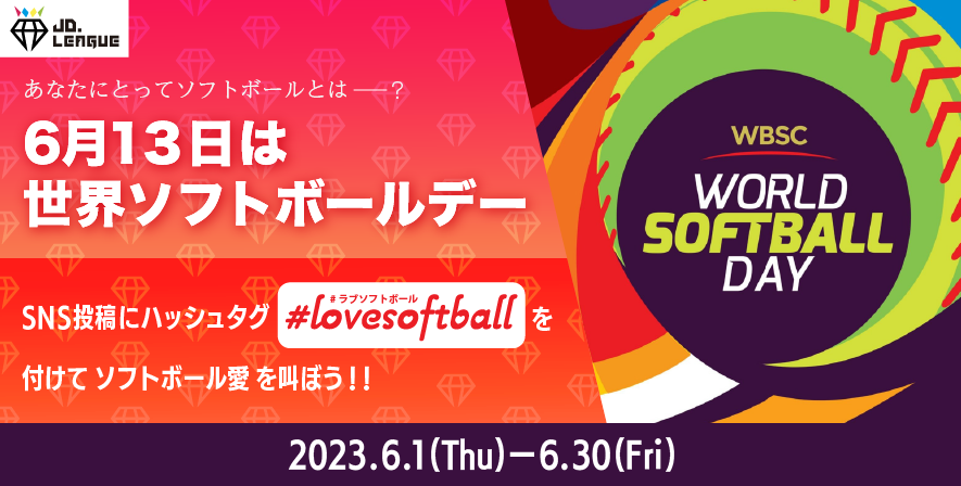 JD.LEAGUEでは、6月13日の「世界ソフトボールデー」に際して、6月1日から30日を対象に『LOVE SOFTBALL』プロジェクトを実施いたします。世界中のソフトボーラーと、ソフトボールに関わるあらゆるソフトボールファミリーを巻き込み、ソフトボールへの愛を発信することで、ソフトボール界の発展と、ファミリーの結束力向上やその輪の拡大を目指します。