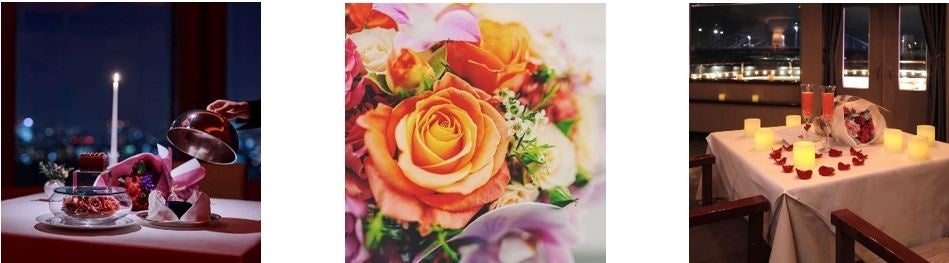 【プロポーズにも】フルコース×食後は個室ナイトクルーズへ+乾杯シャンパン+個室貸切クルーズ&花束 24000円(税・サ込)