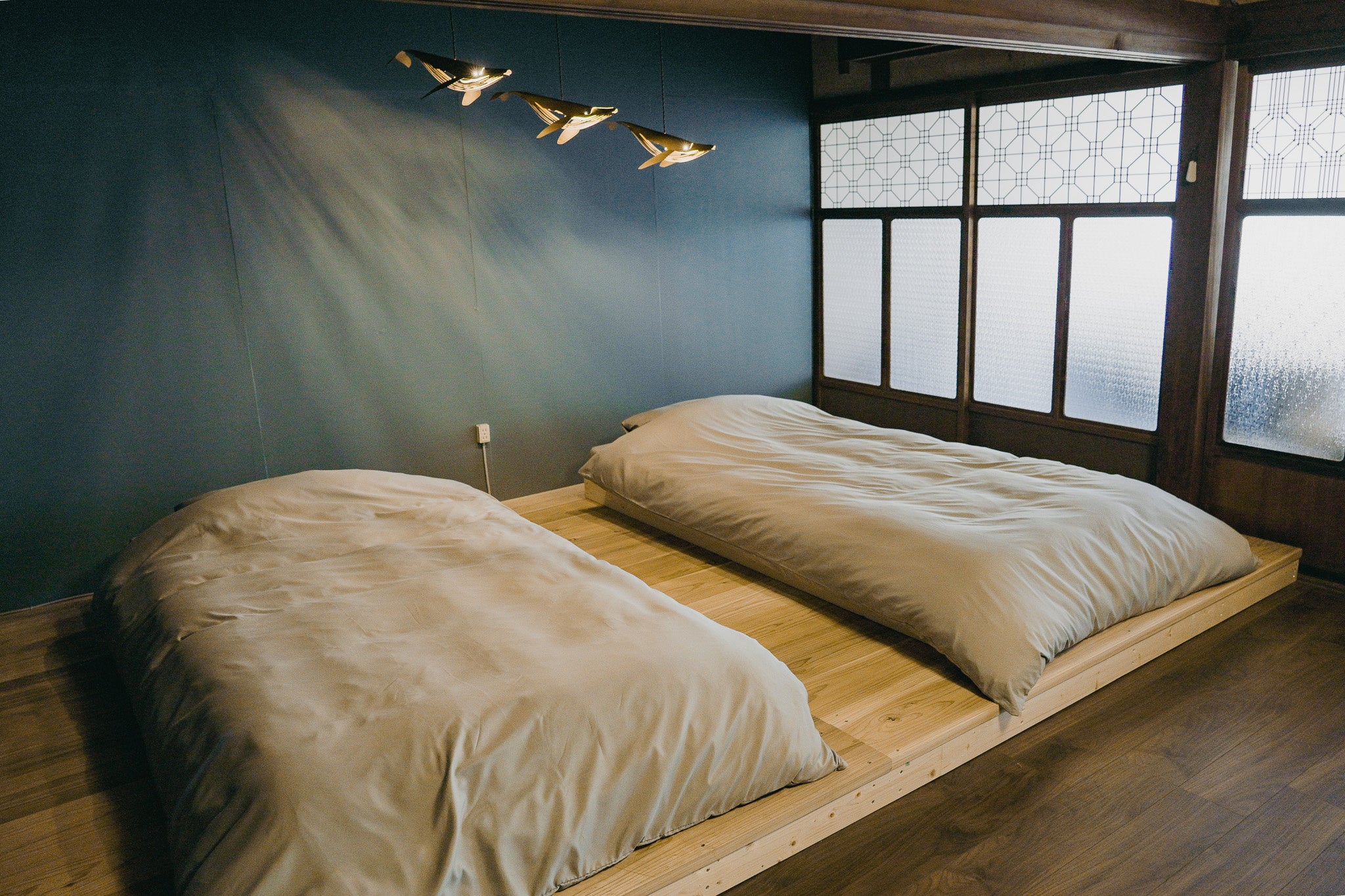 「THE LANDSCAPE」は、2023年5月にオープンした一棟貸し宿です。古き良き日本家屋は築80年で、かつては左官職人のお屋敷でした。日本家屋らしい欄間が特徴的で美しい作りです。しばらく空き家だったこのお屋敷を、実際に因島で暮らすスタッフがひとつひとつDIYでリノベーションし生まれ変わらせました。古さと新しさを融合させた和モダンな内装は、初めて来たのに気負いしない、そんなリラックスした雰囲気が漂います。