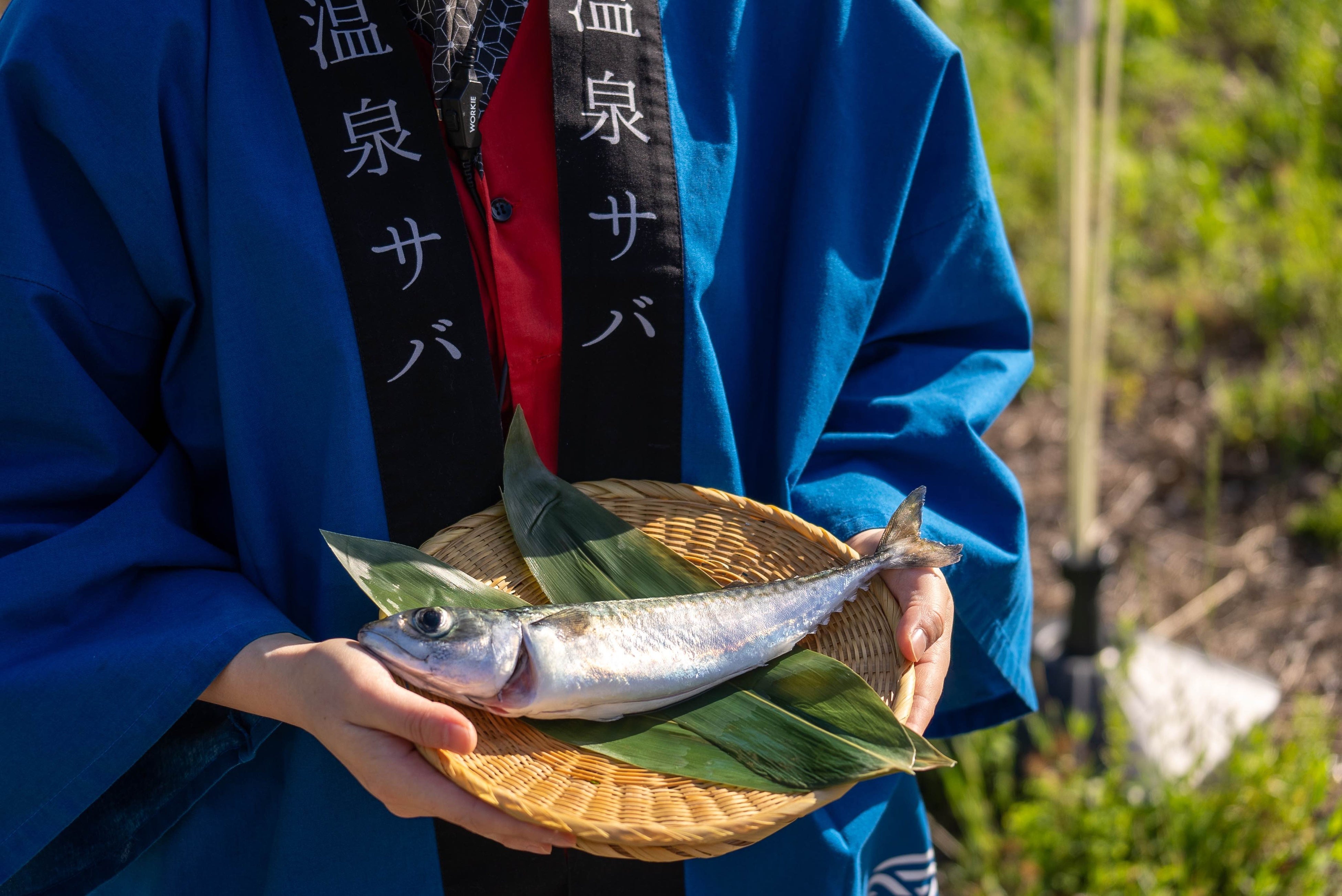 養殖場で育った貴重な「温泉サバ」をみなさまの目の前でさばきます。見学無料