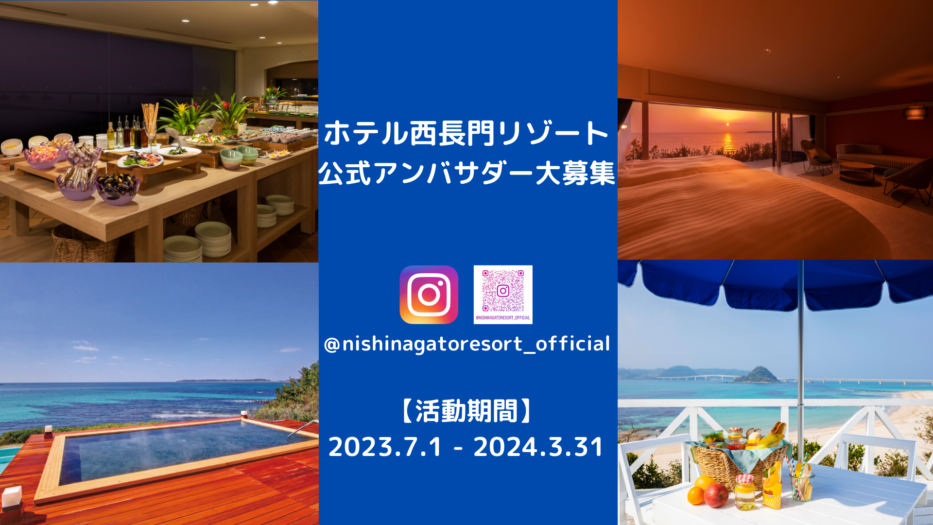 山口県下関市豊北町にあるホテル西長門リゾートでは、たくさんの方々にこのエリアとホテルの魅力をInstagramで発信していただけるアンバサダーを募集いたします。私共はCMでも有名な角島大橋に一番近いホテルで、目の前にはマリンブルーの海とプライベートビーチのような砂浜が広がり、南国リゾートの雰囲気に包まれています。アンバサダーの方にはこのロケーションの素晴らしさと、ホテルの魅力をご紹介いただくべくご協力をお願いしたいと思っています。