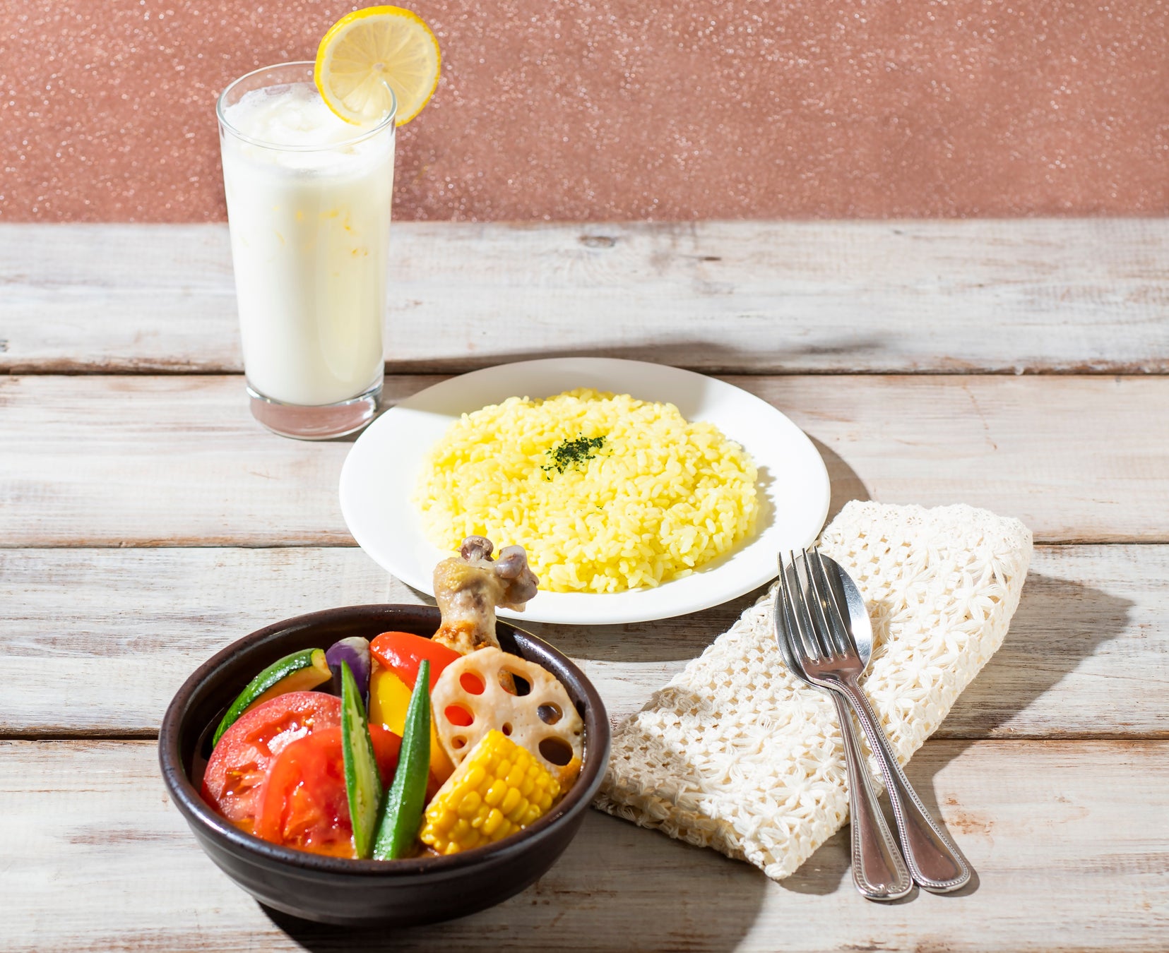 トマトベースの優しい酸味とスパイス感がベストマッチ。炙りチーズのトッピングもおすすめです。