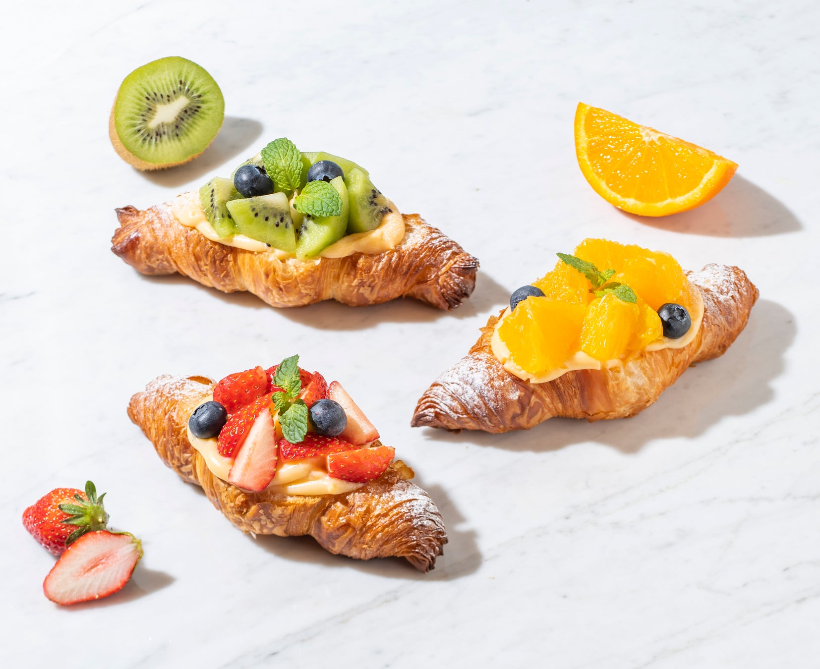 オリジナルのクロワッサンに特製クリームとフレッシュフルーツを盛り付けました。