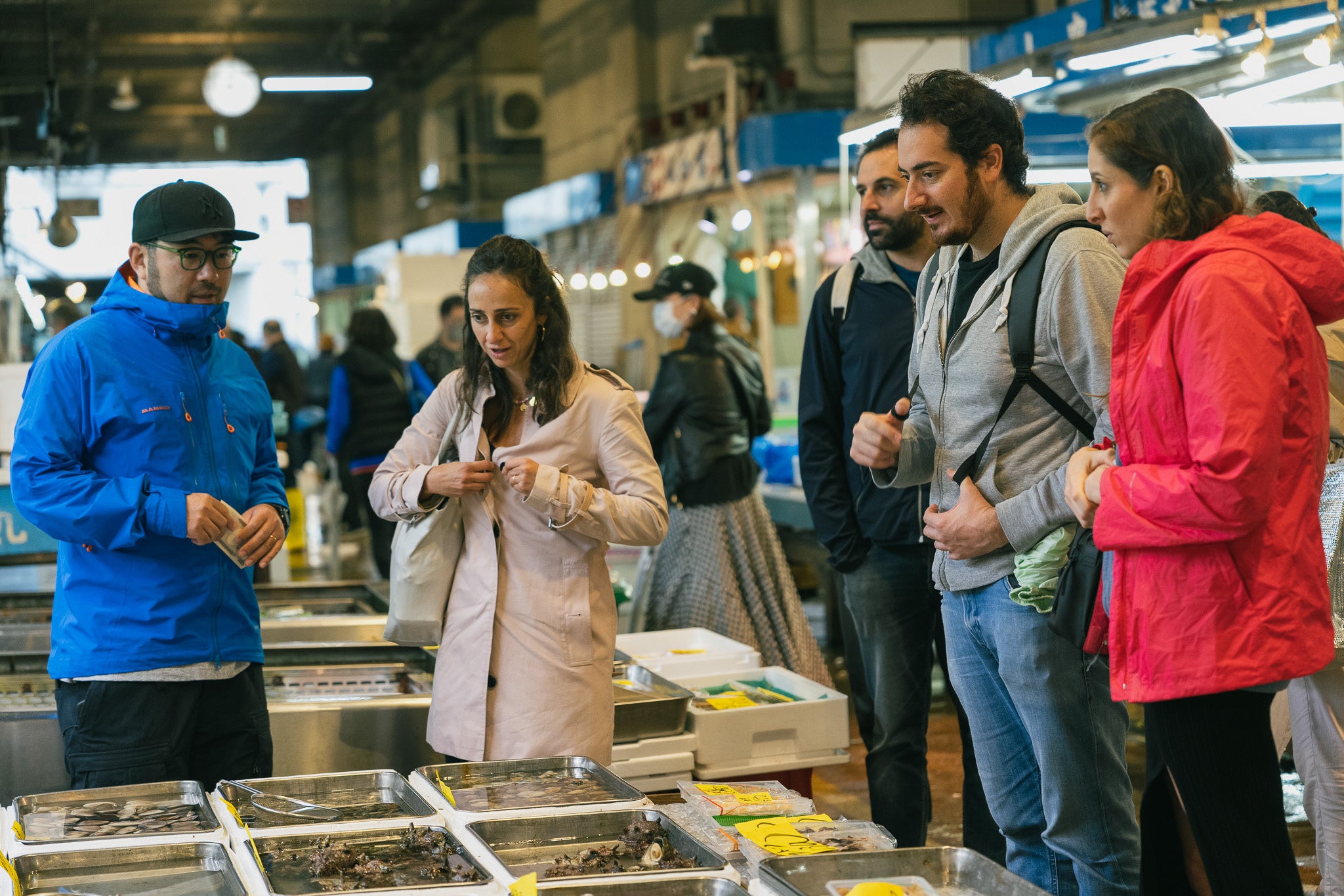 東京には、巨大で有名な市場があり、マグロがたくさん並んでいるような迫力のある場面を遠くから眺める見学コースも設定されています。翻ってローカルな市場には、より親近感のある雰囲気があります。豊富で多彩な食材はもとより、それを扱う人々を間近に見ることができたり、場内のローカルな食堂ではその方々に混じって朝食をいただくこともできます。あまり見物目的の旅行客がウロウロしすぎることは御商売の迷惑になってしまいますが、この体験ではこの市場をよく知る料理人が自ら案内します。夜には、購入した食材でディナーをいただきます。素晴らしい食材と料理に触れる、もっとも贅沢な食体験となることでしょう。
