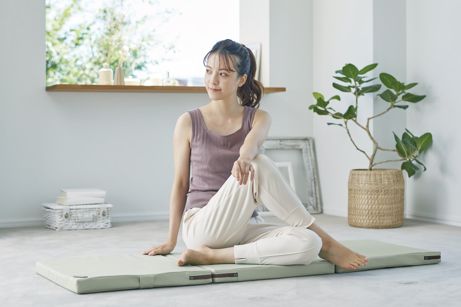 この度シリーズ第3弾として発売するのは、折り返してたためる高反発クッションのエクササイズ用マット「Toffy エクササイズマット」。1段6層、3段に折りたたむと18層の高反発素材のクッションで、エクササイズ時の床の硬さによる身体への負担や衝撃を和らげます。広げるとストレッチやヨガ、3段に折りたたむとジャンプエクササイズなど、1つで多彩なエクササイズに活用できます。床への衝撃や音も少ないので、下の階を気にすることなく安心しておうちでエクササイズをすることができます。また、エクササイズ以外にもお昼寝用マットとして、アウトドア時の車中泊用マットとしても使えるので、1つあるとマルチに使える便利なマットです。