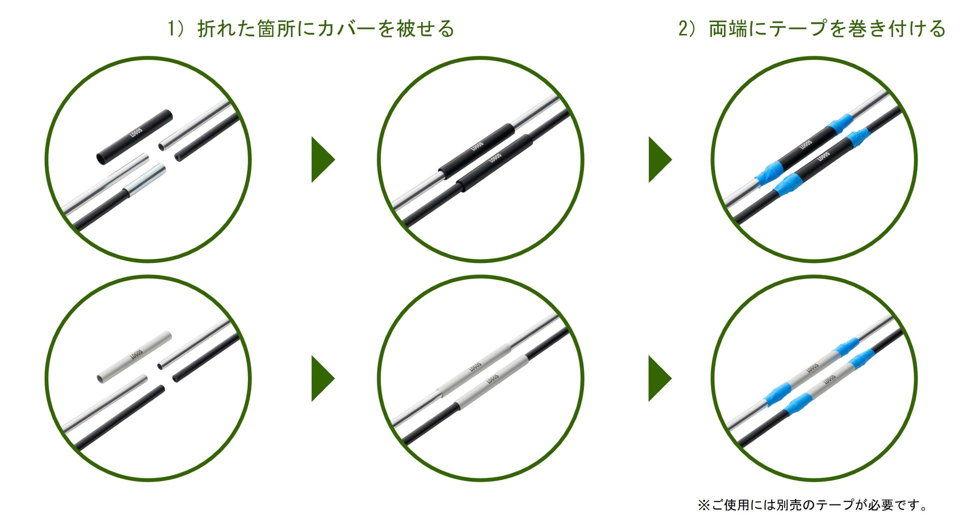 折れたフレームに被せてテープで固定するだけでOK!「テントフレーム補修カバー」2種 新発売!