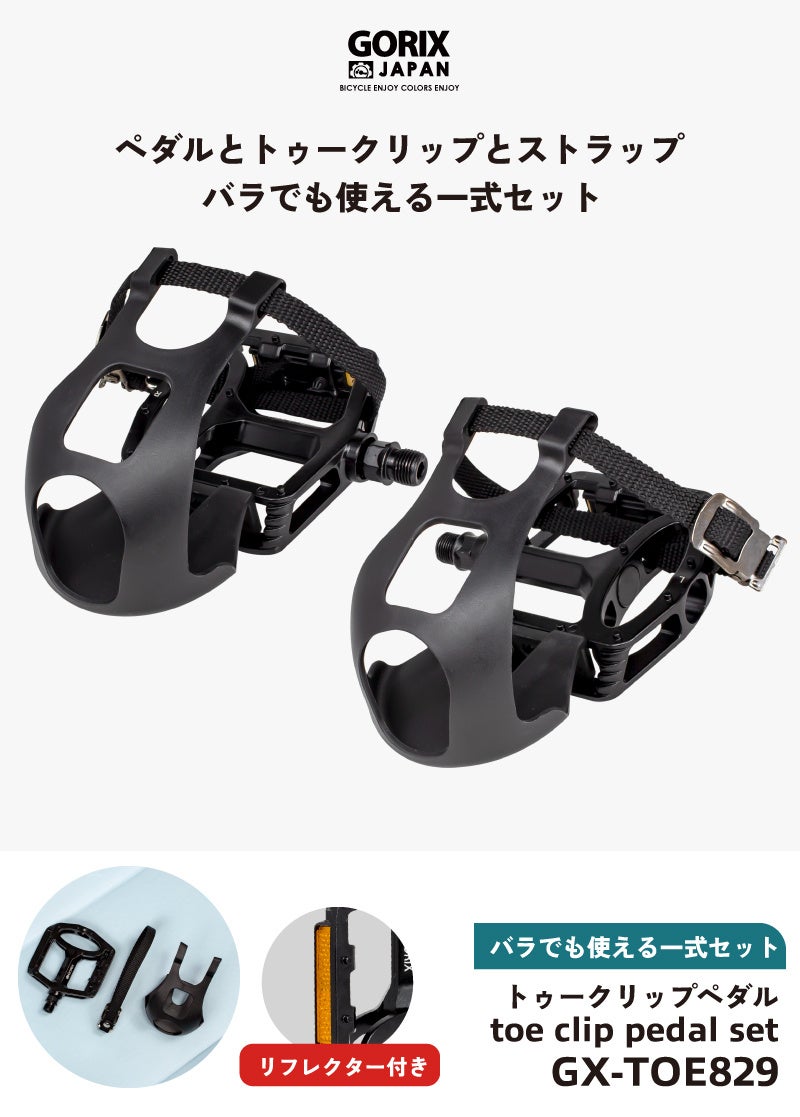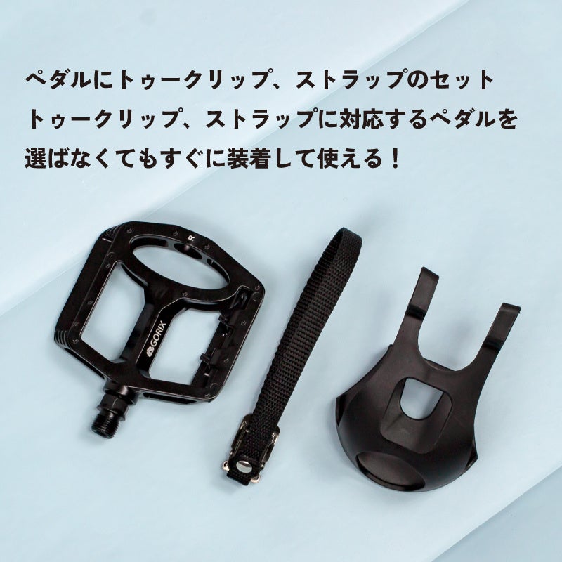 フラットペダル、トゥークリップ、ストラップ、取付け工具 |