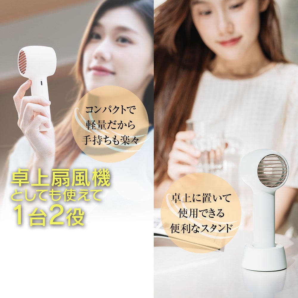卓上扇風機とハンディファン1台2役の使い方ができます。