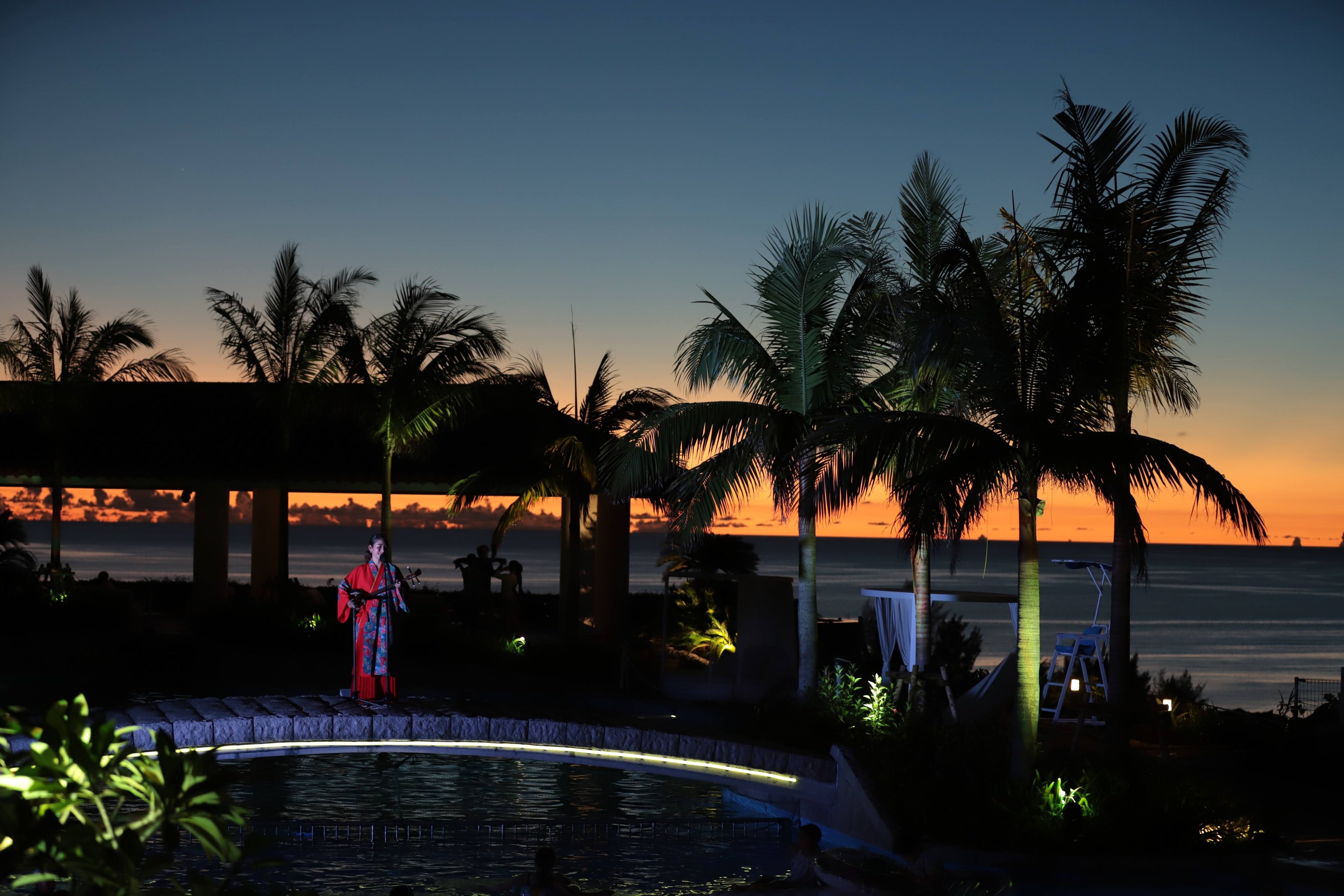 さらに、7月22日(土)〜8月27日(日)の夏休み期間中は、沖縄のナイトタイムを特別な体験に変えるイベントを盛りだくさんご用意しております。期間中は、沖縄の伝統楽器「三線」による迫力のライブを毎日プールサイドで開催するほか、地元の青年会による伝統エイサー演舞や、自然を学ぶ星空観察、お子様に大人気のナイトトラップ(昆虫観察)など、充実したイベントラインナップを取り揃えています。夜を遊び尽くした翌朝は、沖縄の美味をふんだんに詰め込んだ「沖縄御膳」をご朝食としてご提供します。