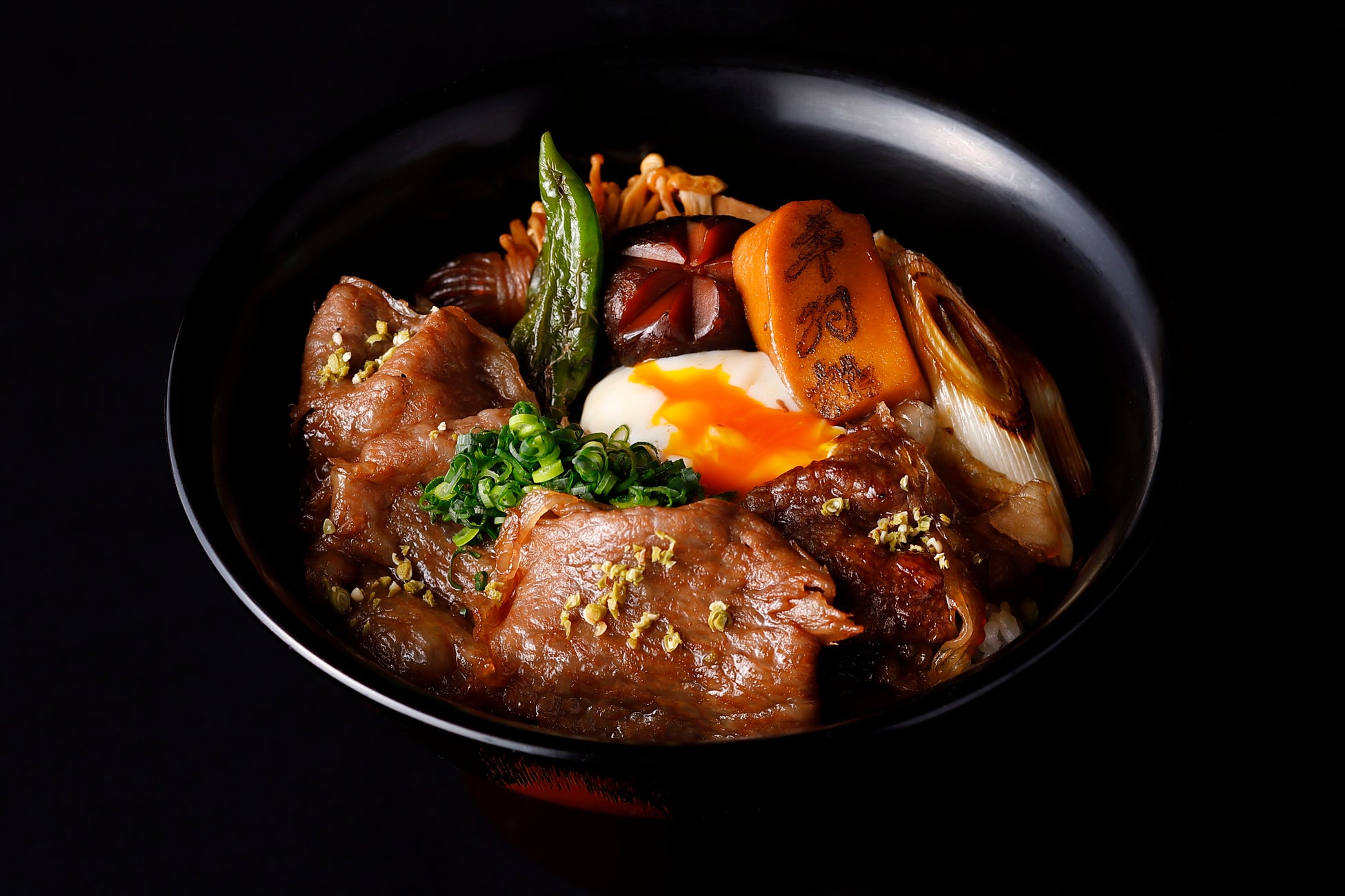料亭の味わいをカジュアルにお愉しみいただける「KATO’S DINING & BAR」では、『鳥取和牛すき焼き丼マックス』を提供。旨みたっぷりの鳥取和牛を料理長が厳選した季節の旬野菜とともに、複数の魚介から抽出した和出汁や白ワインなどを使用した割り下で煮込んだ、味もこだわりも最上級のすき焼き丼です。