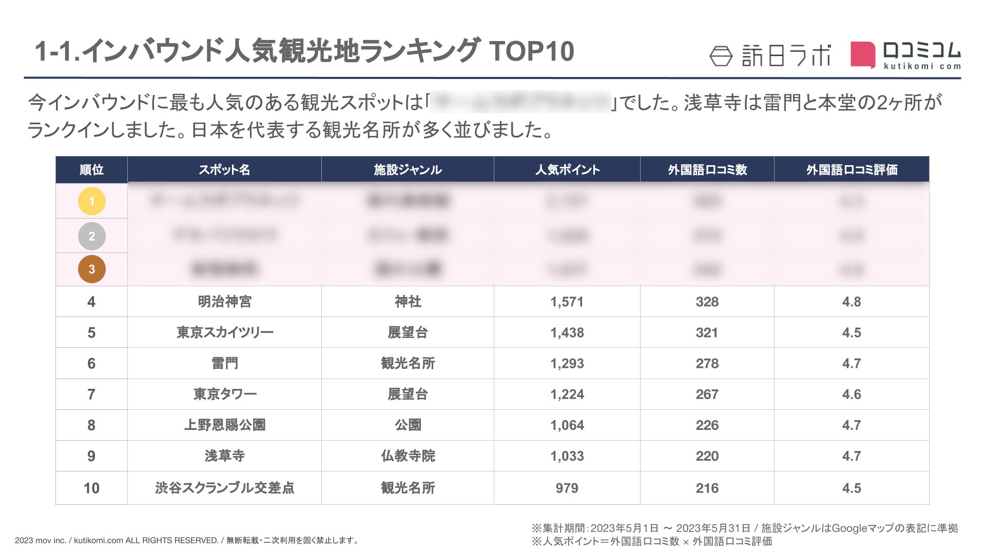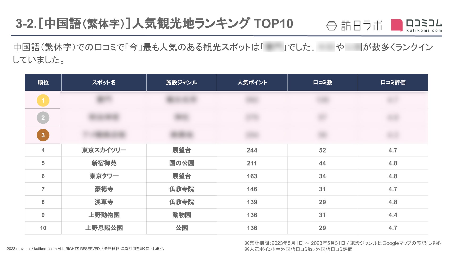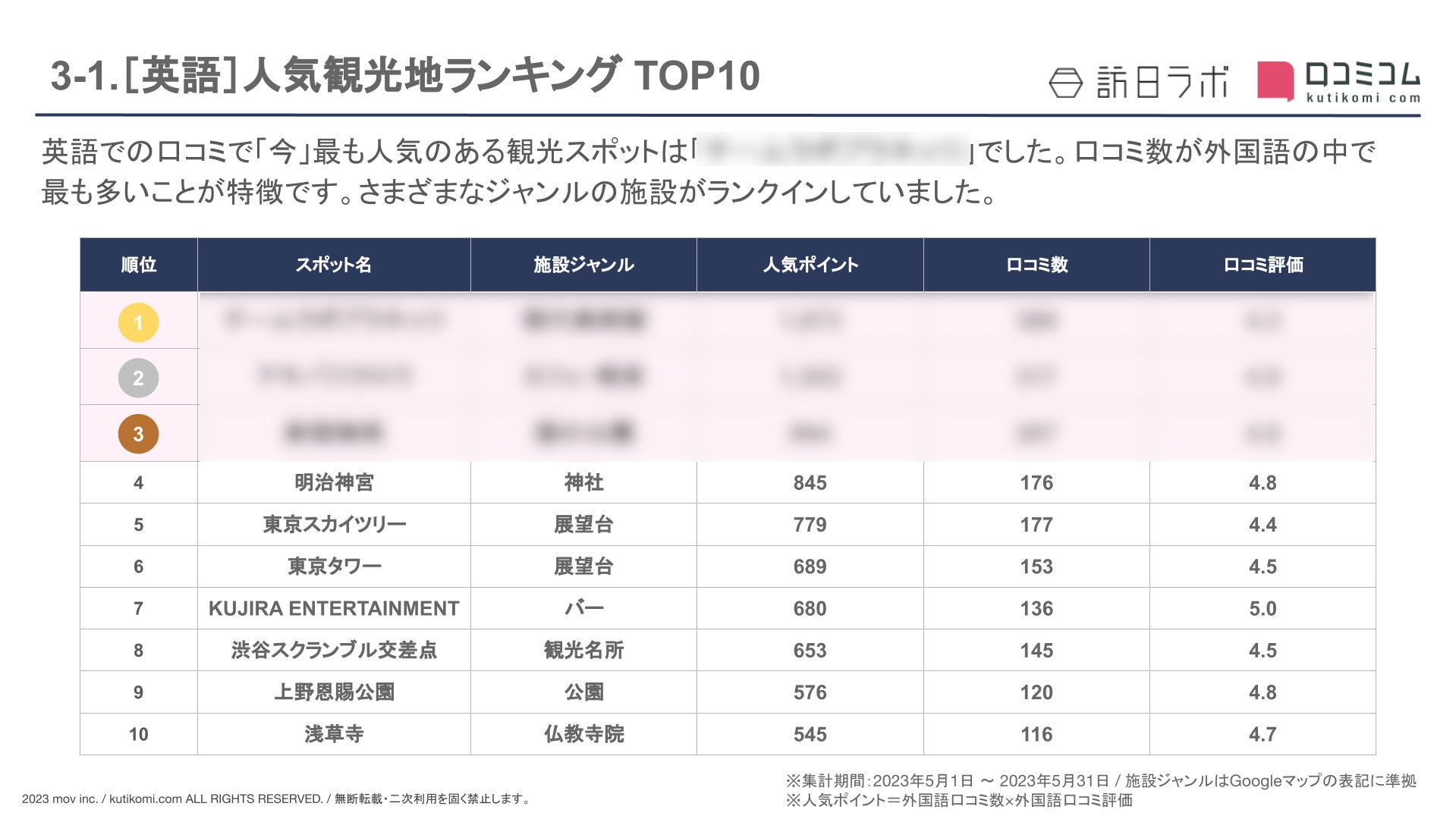 ・外国語口コミ数&口コミ率 TOP10 のスポット