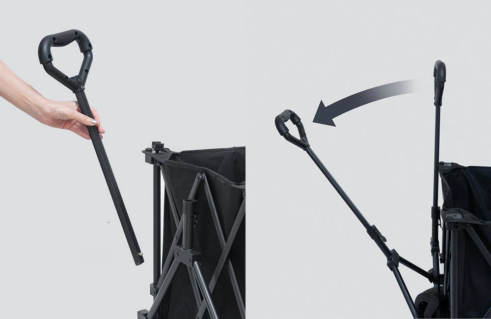 フォールディングワゴンMの容量は106Lとファミリーでのキャンプに十分なサイズ感。大きいながらも小回りが効くので、釣りやフェスなど移動の多いアウトドアアクティビティでも使い勝手抜群です。