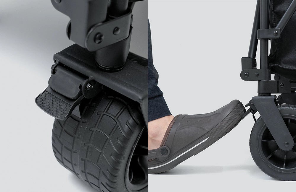 すべての車輪にストッパーが付いているため、荷物の積み下ろし時やテーブルとしての使用時に安定感があり、安心して使用できます。足はもちろん、手でも簡単にロック&解除ができ、サンダル着用時に操作しづらいといったこともありません。
