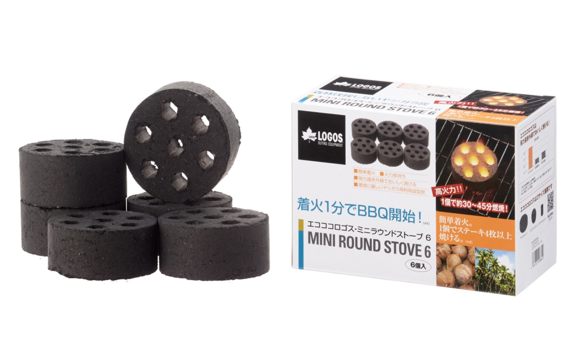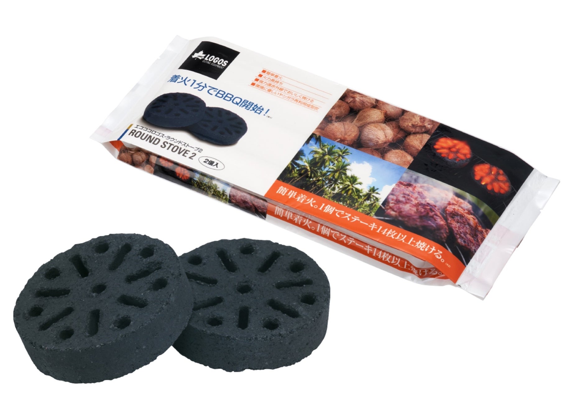 LOGOS独自の形成炭「エコココロゴス・ラウンドストーブ」と「エコココロゴス・ミニラウンドストーブ」の専用ケース。それぞれに2個用・4個用を展開。ケースを使ってシーンに応じた分だけの燃料を持ち運べば、キャンプで出るごみの削減にもなるのでエコにもつながる。