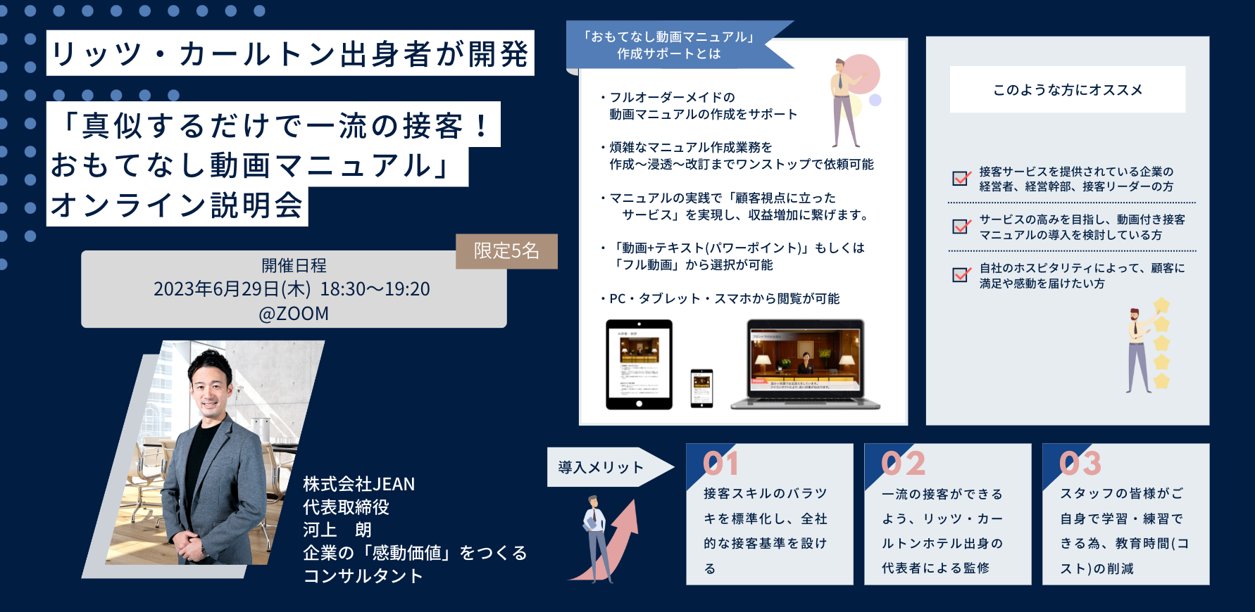 テーマ:「真似するだけで一流の接客!おもてなし動画マニュアル」作成サポートサービスに関するご説明