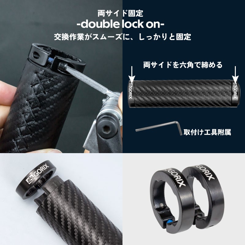 グリップの両サイドを六角レンチで締めて固定するダブルオックオン。