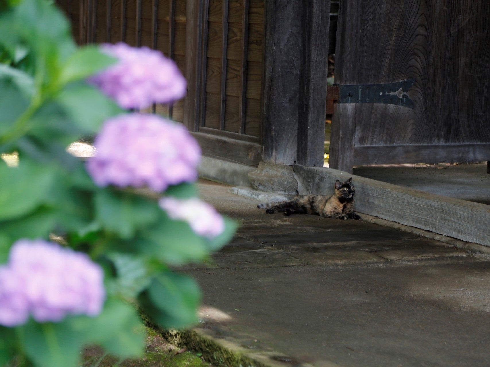 妙楽寺に気まぐれに現れる猫。運良く出会えたら一緒に撮影してみるのもオススメです。