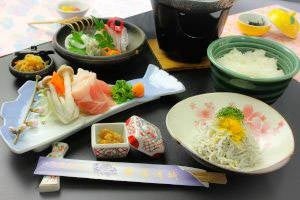 ②湯浅城にて釜揚げしらす御膳で昼食とお買い物をお楽しみください。