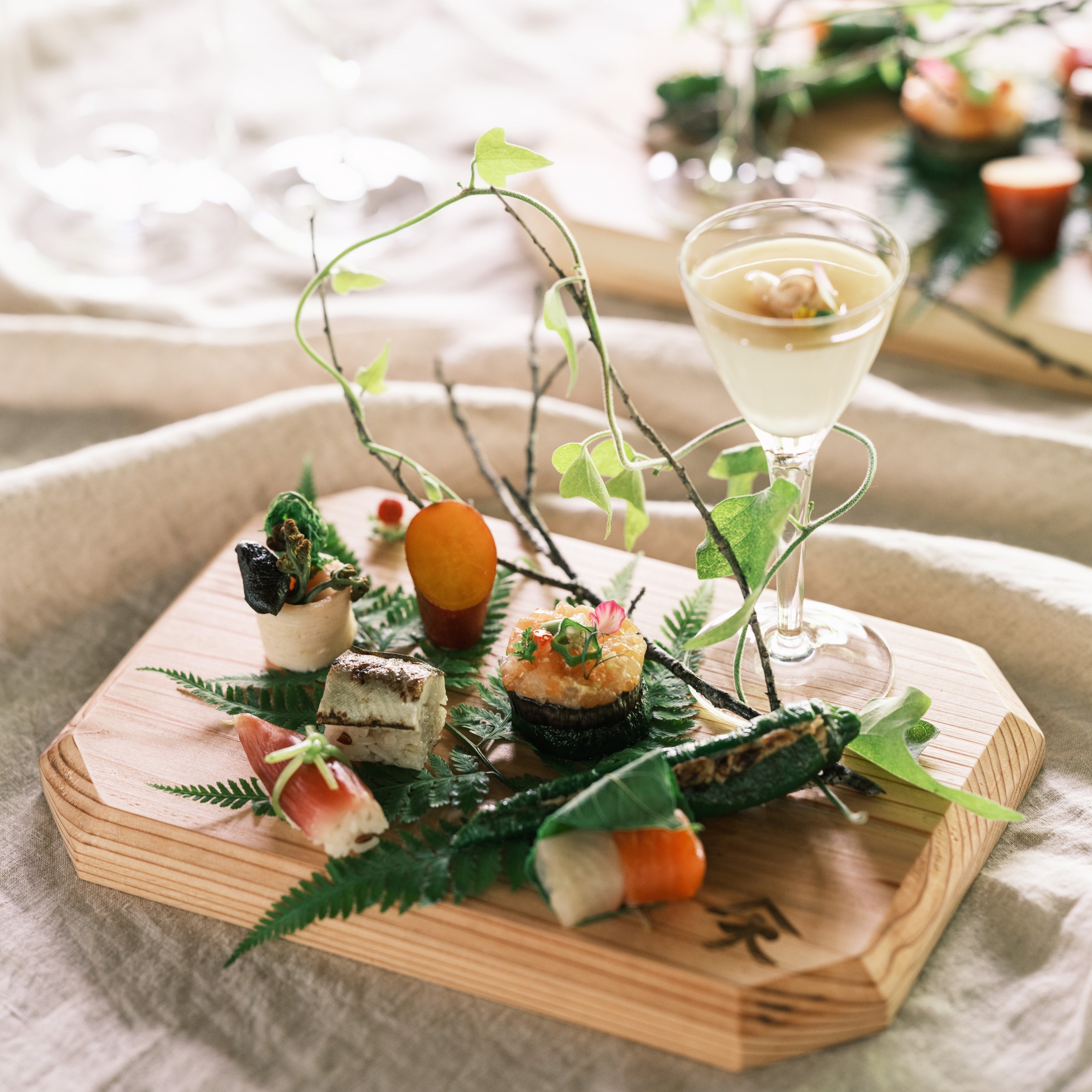 「NIPPONIA 小管 源流の村」のヘッドシェフ鈴木啓泰は、今回の「ご祝儀」を当ホテルで行うにあたり、小菅村に伝わる結婚式にまつわる食文化を村のお年寄りの方々に取材を行い、その食文化を継承したメニューを現代風にアレンジした料理をご提案いたします。小菅村名産の川魚や、村人が手塩にかけて育てた旬のお野菜など、その季節の土地の味覚を存分に引き出した創作和食をお楽しみいただけます。