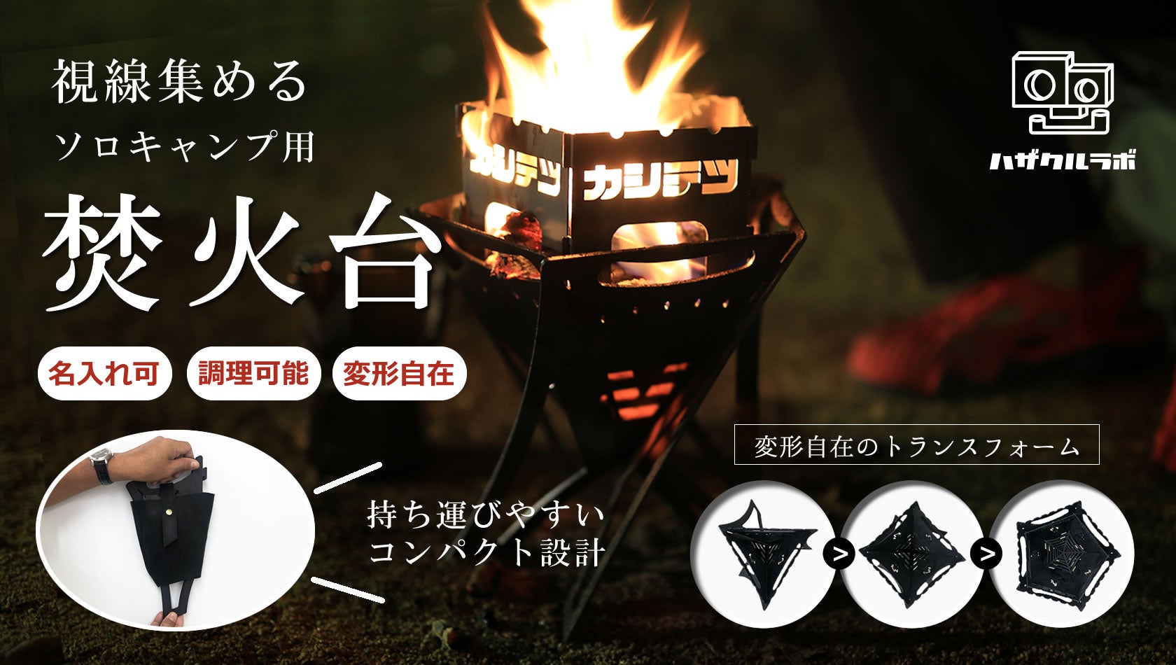 柏木鉄工のソロキャンプ好きスタッフがこだわった大きさ、気軽さ、デザイン。カシテツ職人が持ちうる技とソロキャンプ愛を注ぎ込んでこのハザクルラボ焚火台が生まれました。