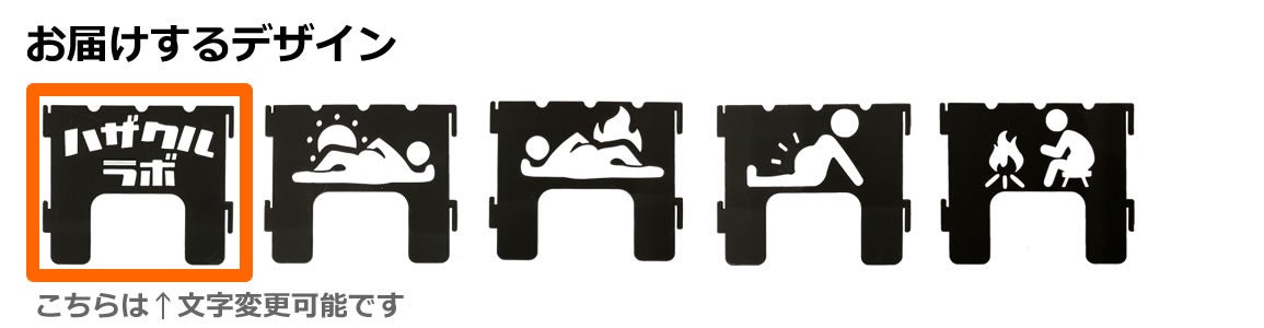 五徳のハザクルラボ部分は、自由な文字をオプションでお入れすることができます。