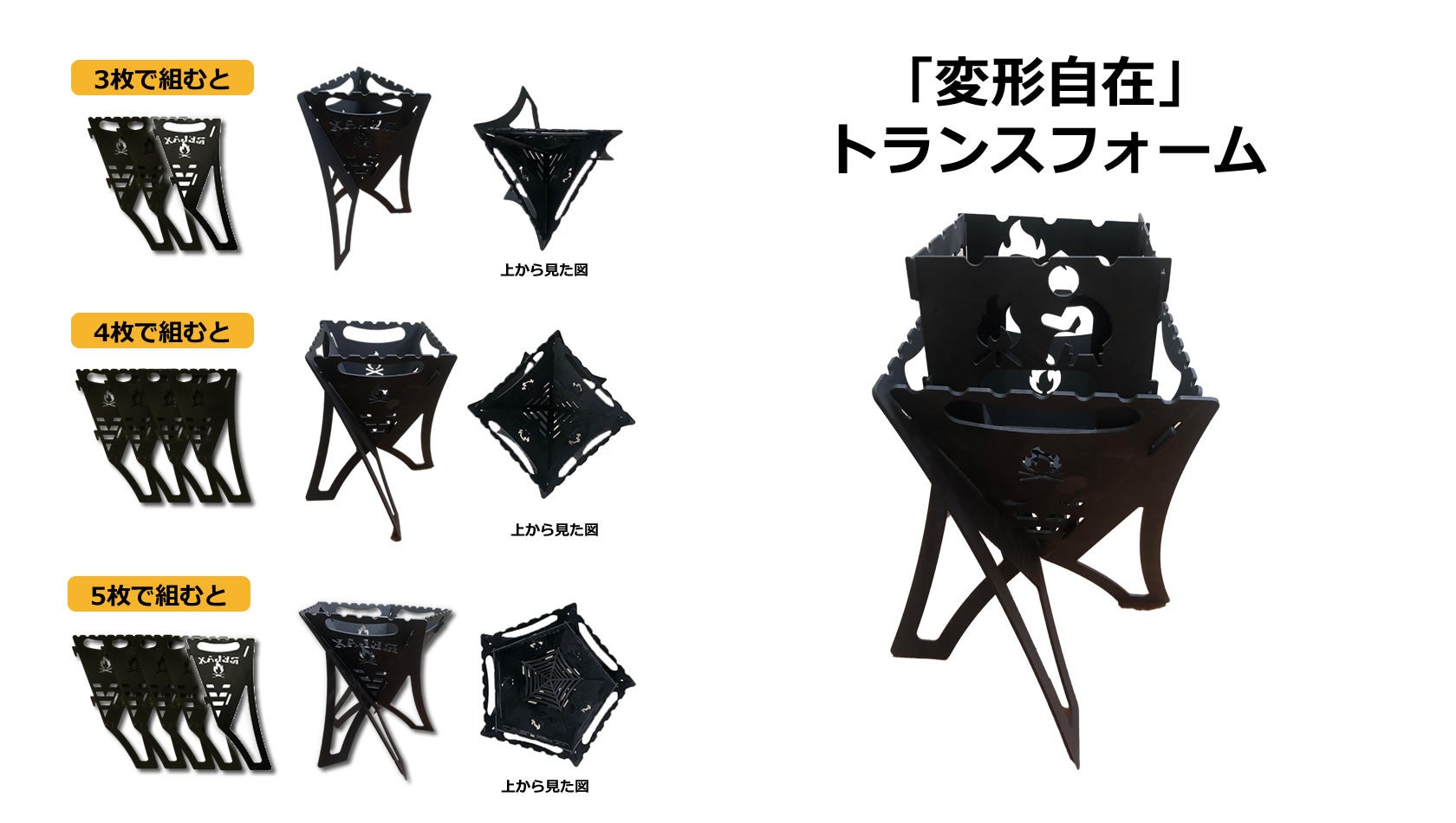 ・「ハザクルラボ 焚火台×五徳×収納袋セット」 |