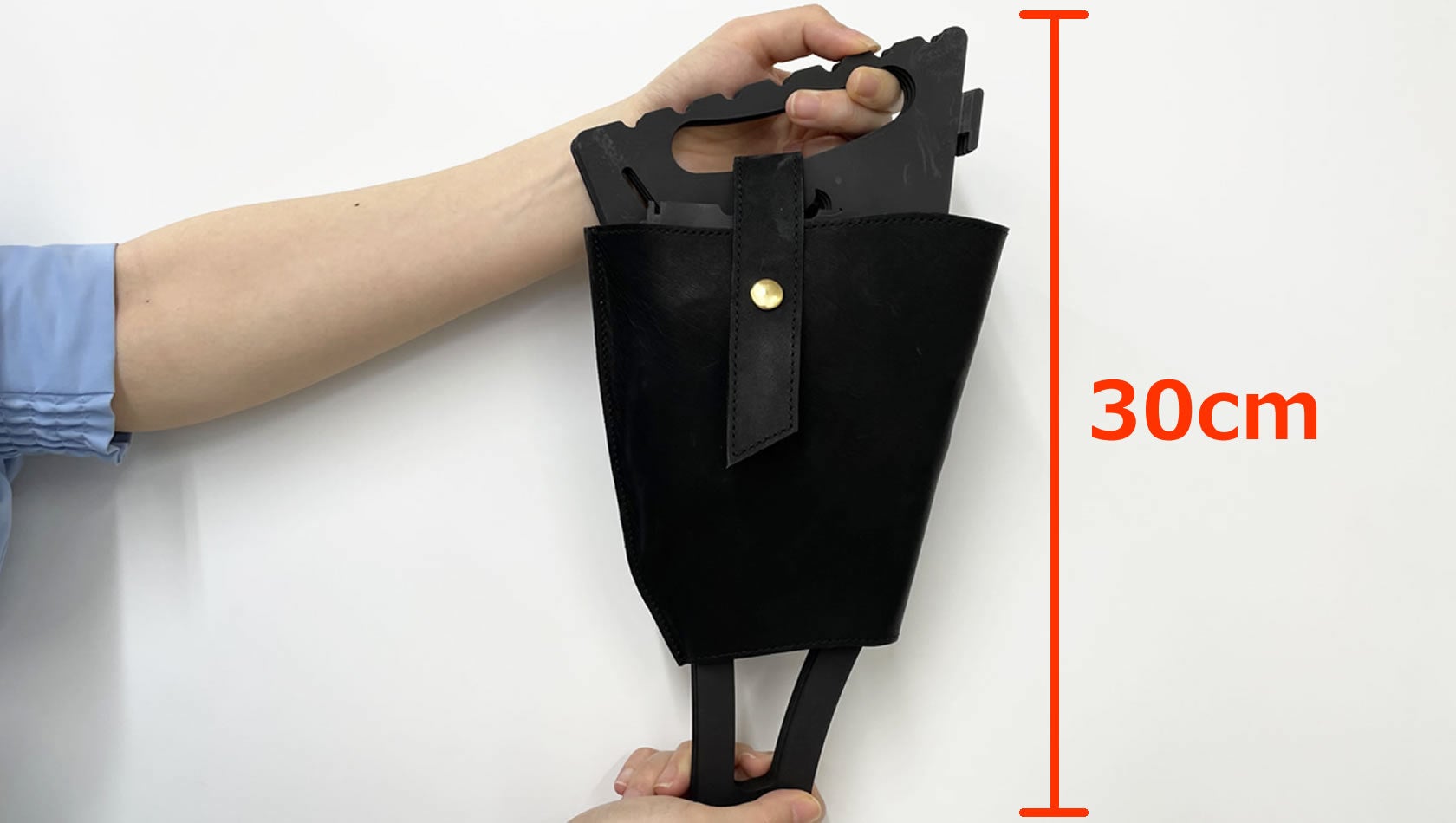 手に持ってもこの大きさ、しかも持ち運びもしやすい。収納ケースも牛革のオリジナルで作成いたしました。
