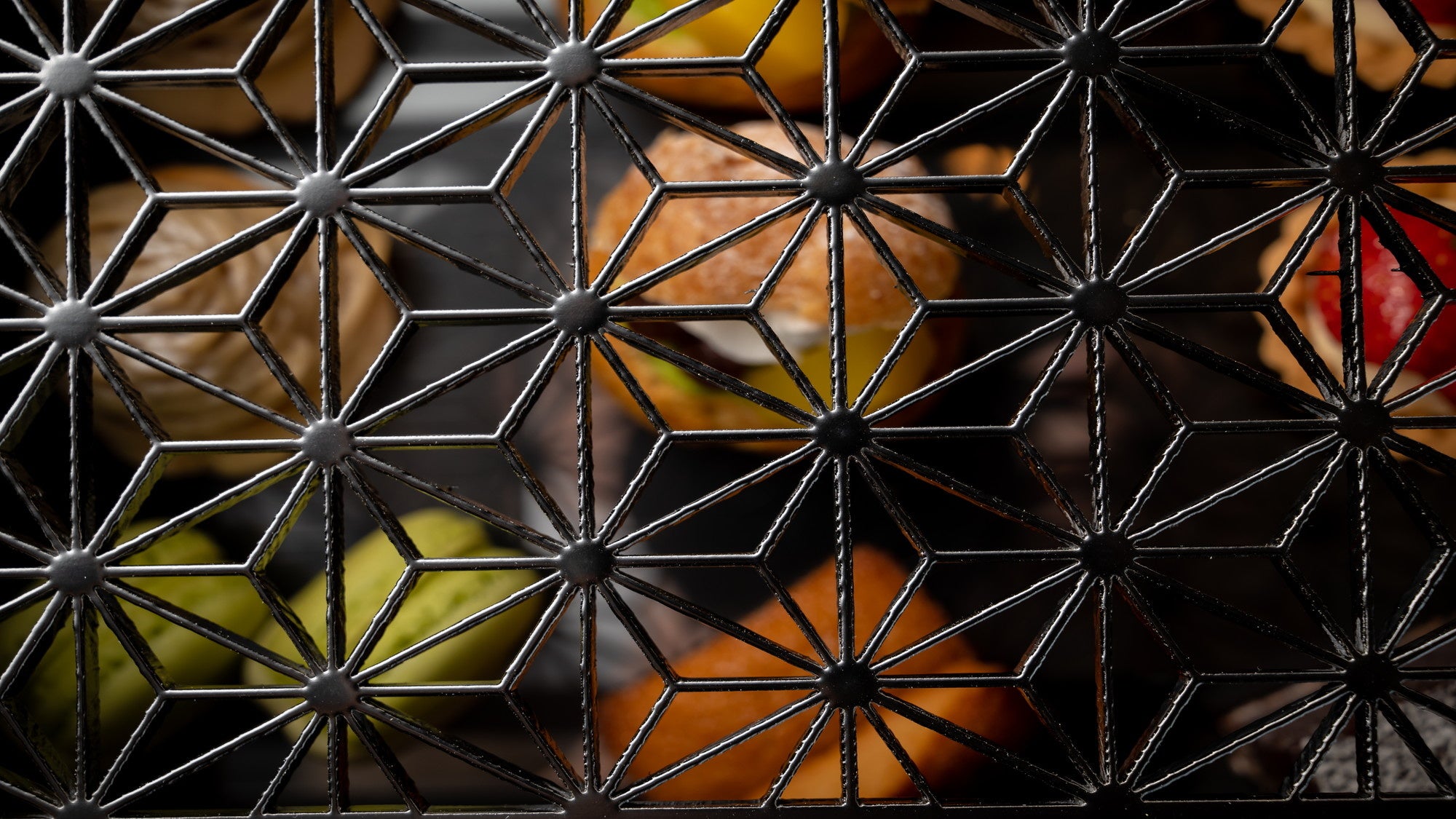 今回、福岡県の地域産業資源に指定されている古賀市の増田桐箱店が手掛ける「桐製品」に約300年の歴史を誇る美しさと緻密さを兼ね備えた大川市の工芸品「大川組子」のデザインを掛け合わせた和モダンな組子風ボックスをご用意。見た目にも繊細かつ重厚感のあるボックスにはプチスイーツが揃うアフタヌーンティーを高層階の景色を眺めながらお愉しみいただけます。