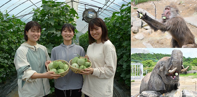 アドベンチャーワールド(和歌山県白浜町)は近畿大学(大阪府東大阪市)との産学連携の一環として、近畿大学農学部(奈良県奈良市)から、最新のICT(情報通信技術)を活用した農法「なら近大農法」で栽培された近大ICTメロンの摘果(以下:摘果メロン)を昨年に続き提供いただき、動物(ゾウやサル類)の食事として活用します。