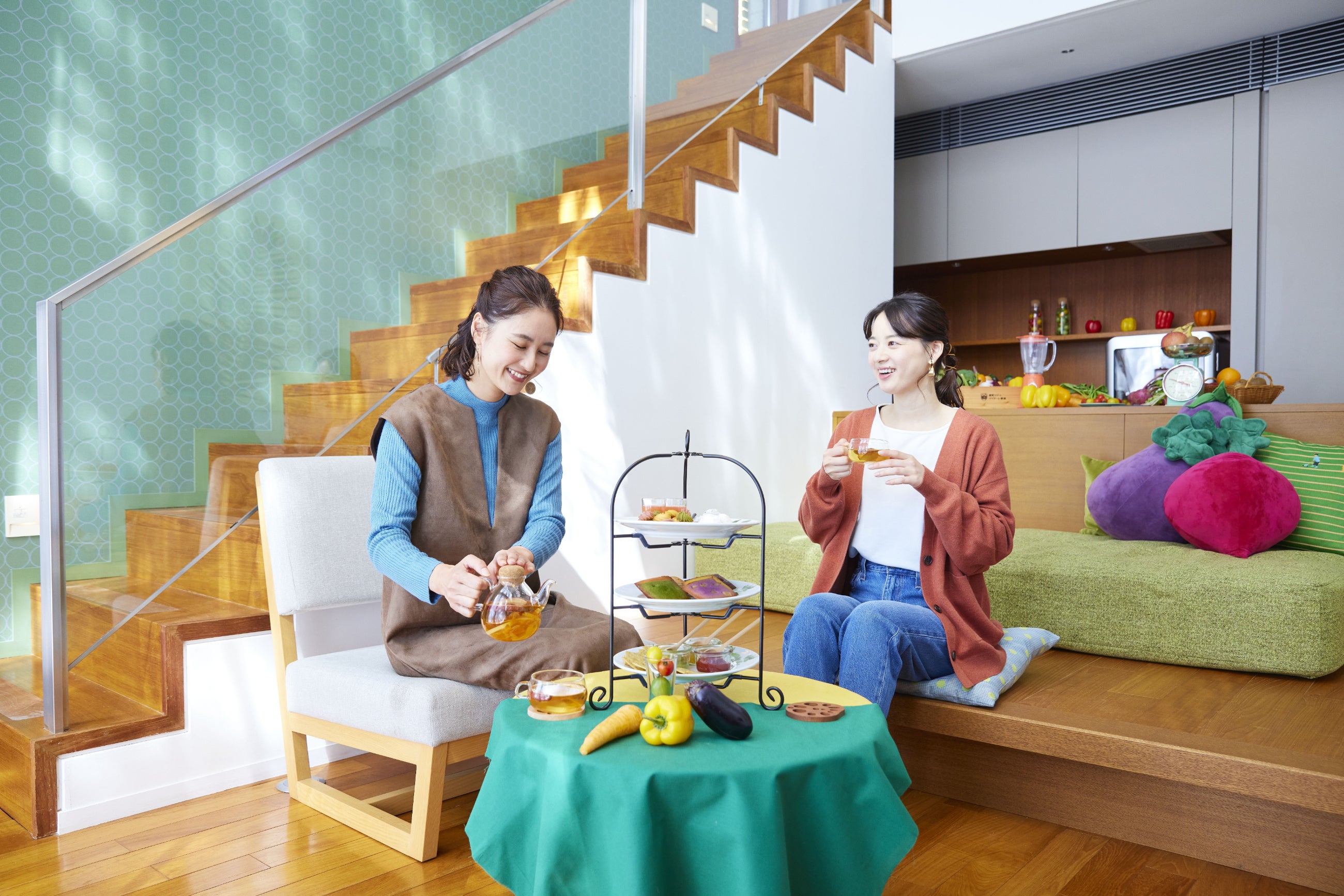 プラン専用の客室「ベジルーム」には、野菜や果物が10種類以上入っている野菜のセラーを用意。好みの野菜を牛乳などと組み合わせ、自分だけのベジドリンクを好きな時につくって味わいます。また、今年は新たに野菜を使用したお菓子や紅茶を楽しめる「ベジタヌーンティー」を提供。野菜が練りこまれたクッキー、トマトゼリーなどのお菓子を、ベジルームの中やテラスなど、好きな場所で食べられます。