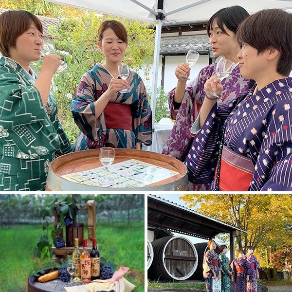関東屈指のパワースポット三峯神社参拝後、 旅館で着付けした秩父銘仙を着て、 秩父の絶品ワインに舌鼓!