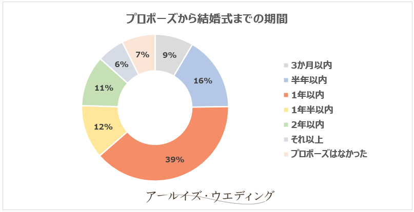 ✓プロポーズから1年以内に結婚式をする方が6割以上。