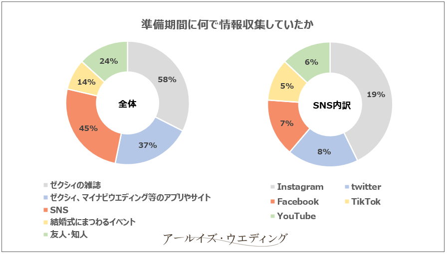 ✓結婚式の準備期間はゼクシィの雑誌とSNSから情報収集をしている方が多い。