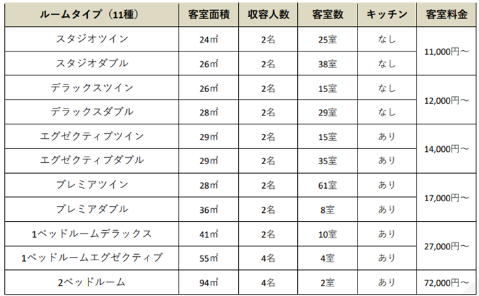 ◎客  室:242室(スタジオ~2ベッドルーム/面積24㎡~93㎡)