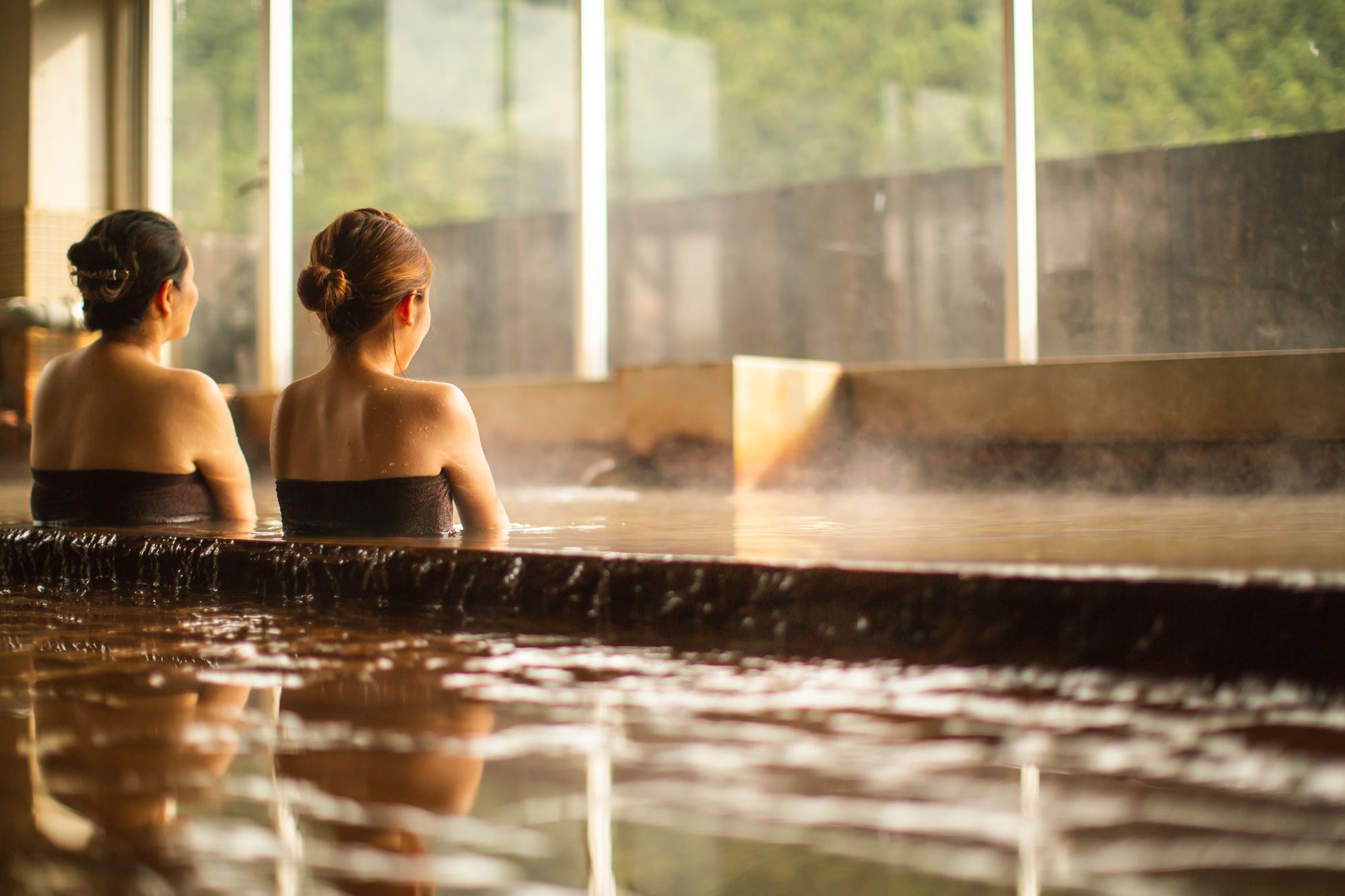 地下750メートルの古生層から湧出する塩分濃度の高い天然温泉が自慢の日帰り温泉。その成分の濃さを証明するように浴槽の周辺には温泉成分が長年かけて堆積した“千枚田”のような結晶ができるほど。