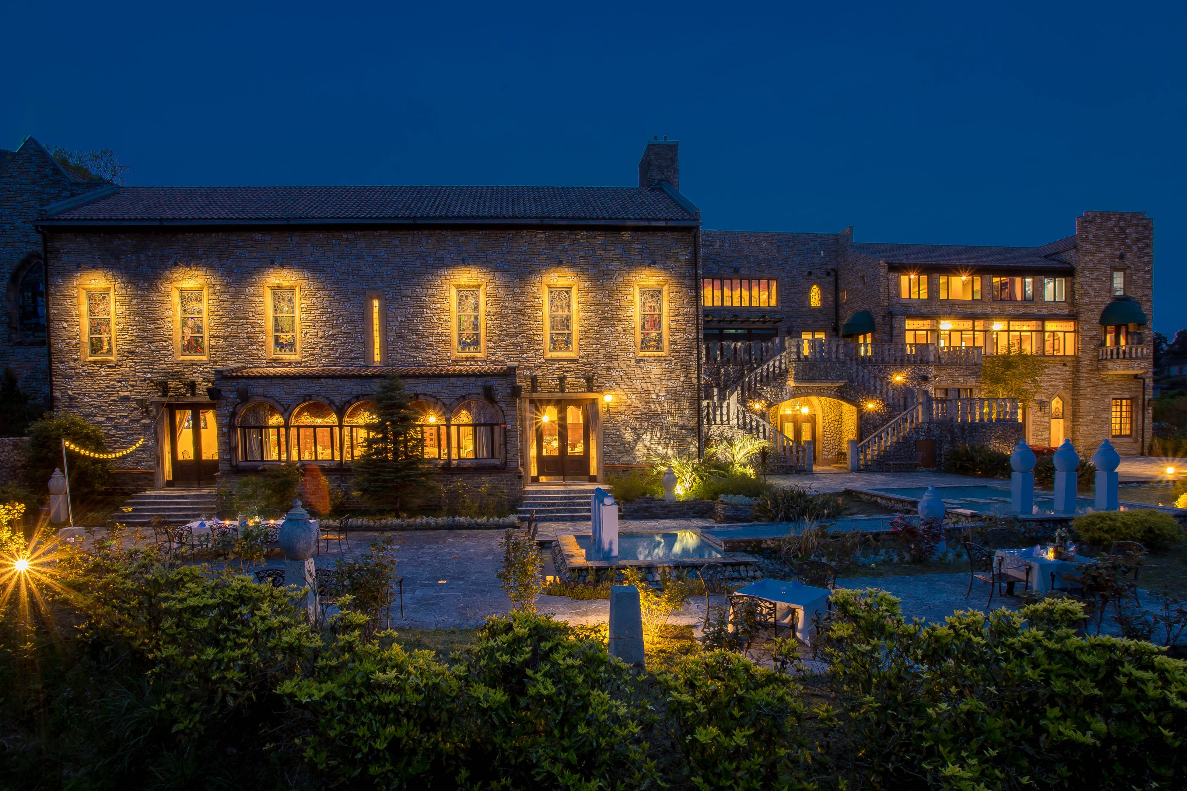 海に向かって突き出したウッドデッキのプールの先に広がる水平線や豊かな緑に囲まれる稀有なロケーションと石造建築と歴史と温もりのあるアンティーク家具や調度品の数々。