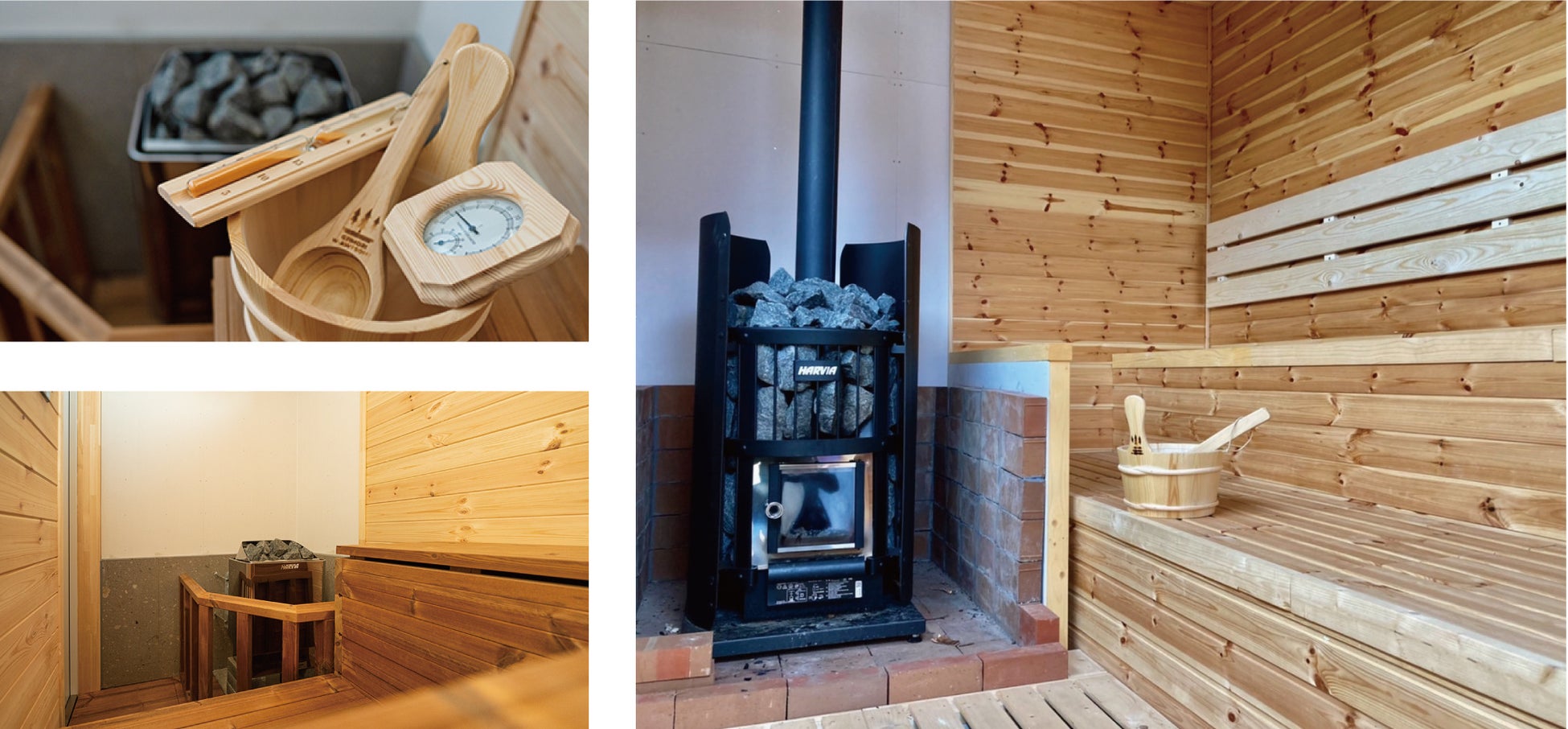 アウトドアでありながらホテルの快適さを楽しめるTINY HOTELのサウナに加え、グランピングテントに新設したコンテナ製のオリジナルプライベートサウナ。