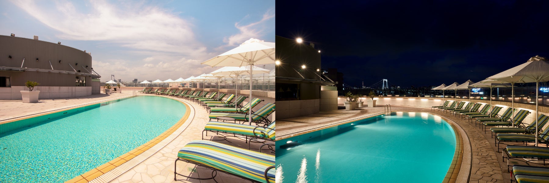 開放的な空間で東京の絶景を一望できる夏限定のテラスプール「グランブルー」を完全予約制で営業いたします。本年は、デイタイム、ナイトタイムそれぞれのプールでの過ごし方をご提案する、プール入場券とホテル内レストランでのお食事がセットになったお得なプランをご用意しました。