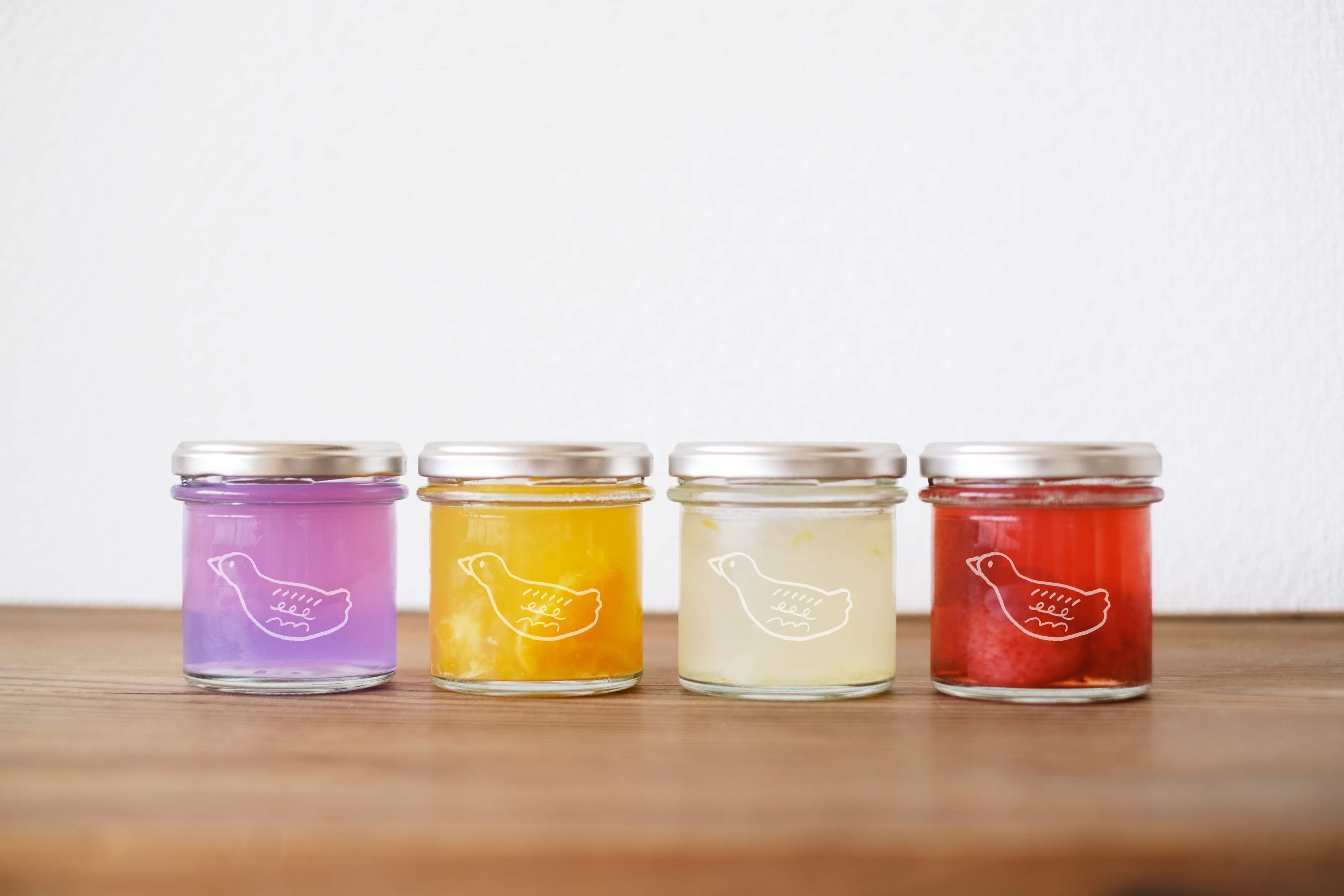 ラインナップはイチゴや、柑橘、無農薬バタフライピーなど。使用した色とりどりの広島の魅力をお届けできると幸いです。