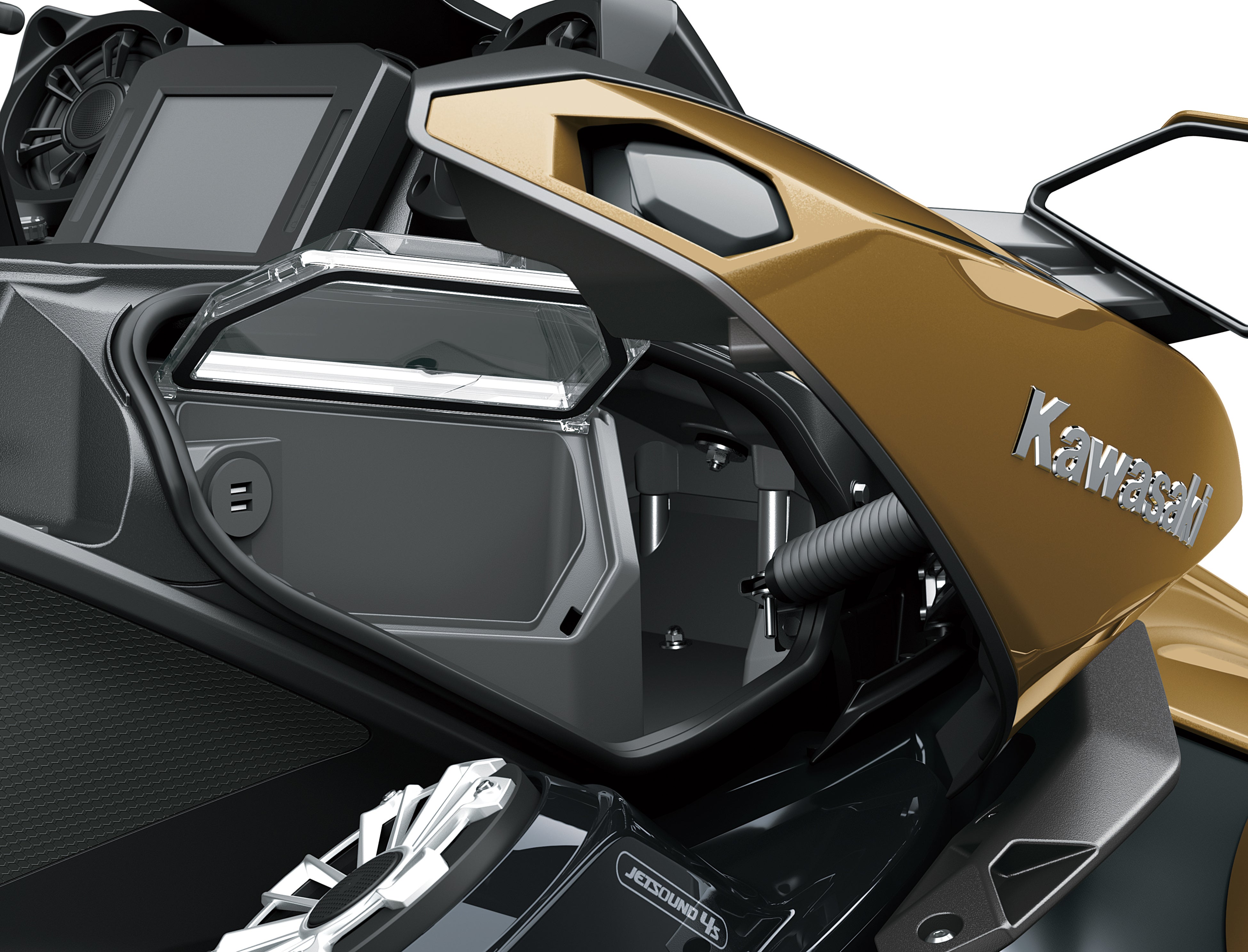 「JET SKI ULTRA」シリーズに、新たに加わった自然吸気エンジンのランナバウトULTRA 160LX。搭載されたエンジンは、STX 160シリーズで好評を博したカテゴリートップクラスのパワーを発揮。様々な水面の状況においてスムーズな動作と正確なハンドリングを両立するディープVハルも継承しながら、拡張したULTRAデッキには、多くのマリンギヤの積載が可能です。また、7インチTFTディスプレイや片手で推力制御を可能とするKSRD(カワサキ・スマート・リバース・ウィズ・ディセレーション)、ライティングポジションを調整できるエルゴフィットラグジュアリーシート、4つのスピーカーを搭載したJETSOUND 4sなどを装備しています。ULTRA 160LXは、ULTRA 310シリーズで採用された革新的な装備や機能を継承し、爽快なジェットスキーライディングを提供します。