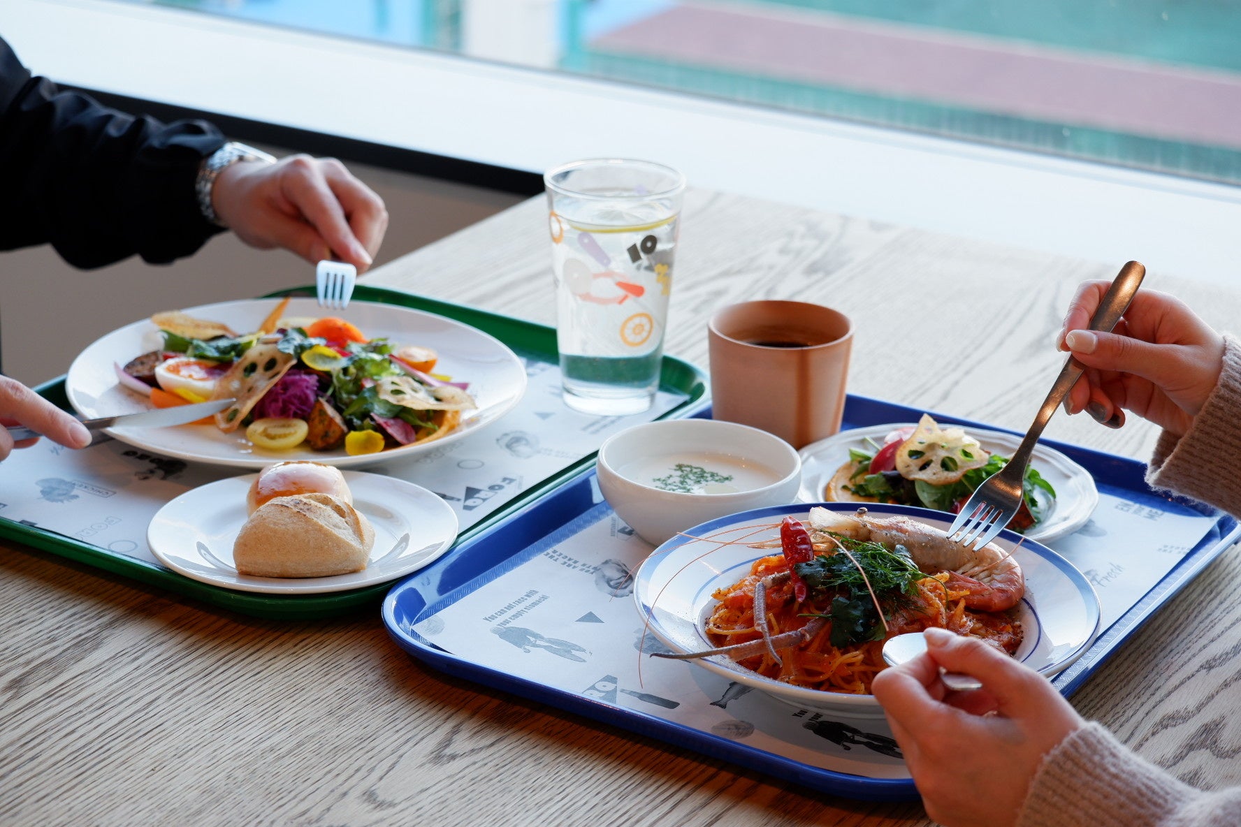 岡山県の豊かな土地で育った味わいが濃く新鮮な“野菜“をベースに、森林どりなどのブランド肉をグリルで調理。店内から見える海で採れた塩を使い、地元の素材の美味しさを引き出します。また、瀬戸内の素材を使ったオリジナルスイーツも楽しむことができるので、カフェとしての利用やワークスペースとしての利用もおすすめです。ホテル宿泊者だけでなく、競輪場来場者はもちろん、近隣の方々のランチスポットや観光客にもお気軽に利用いただけるカジュアルなレストランです。