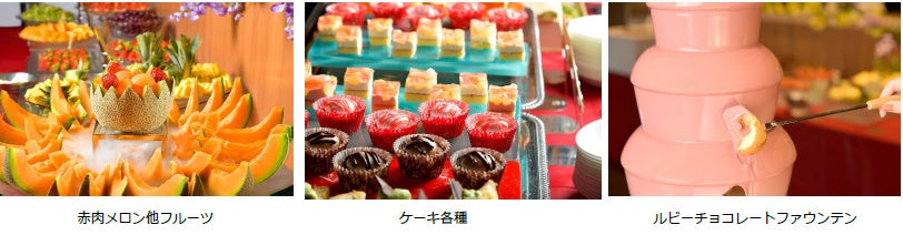 今回の「フルーツ&スイーツパラダイス!」は通常のランチタイムに、赤肉メロンをはじめとした季節のフルーツやスイーツ各種、サンドウィッチなどをビュッフェ形式でご用意いたします。大人も子どもも楽しいルビーチョコレートファウンテンでフルーツやケーキにチョコレートを絡めるなど、お好きな組み合わせでカスタマイズして“無限に遊べる”ビュッフェをお楽しみいただけます。さらにスイーツだけではなく、お食事やサラダバーもご提供いたしますので、ランチとしてもぜひご利用ください。