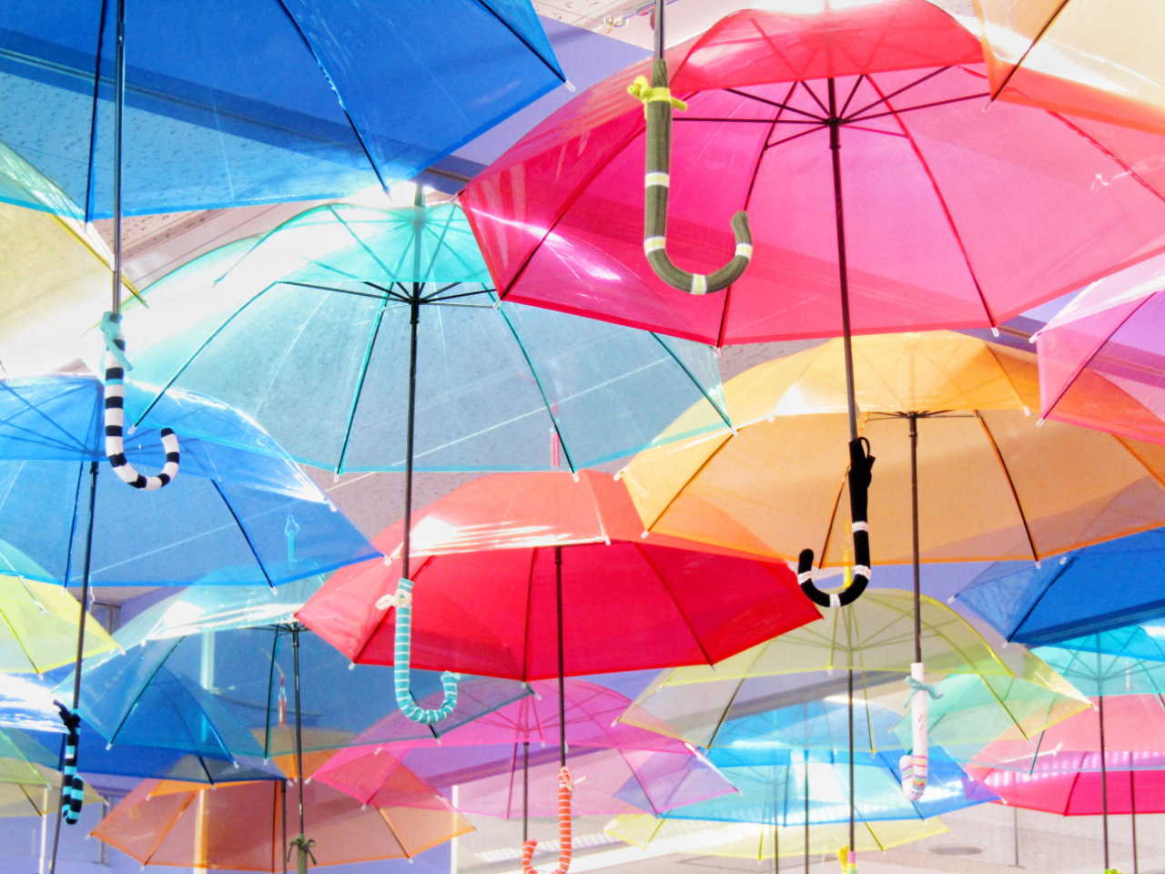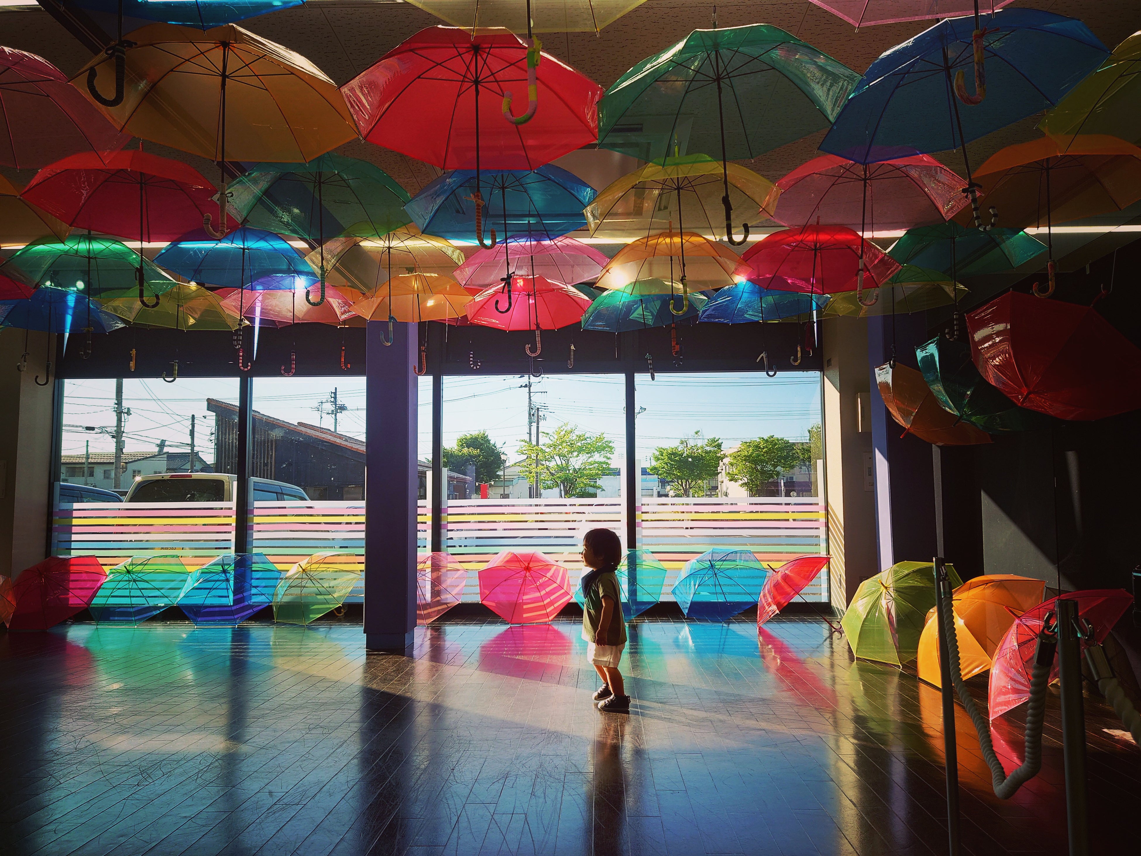 “映える”と人気を集めるアンブレラスカイが「ネーブルみつけ」に出現。カラフルな傘の柄には、見附市の特産品であるニットのカバーが付けられ、見附ならではのオリジナリティをプラス。色とりどりの傘で演出する、色鮮やかで非日常的な空間を楽しみましょう。